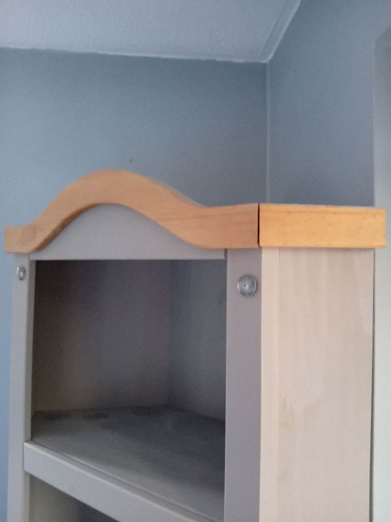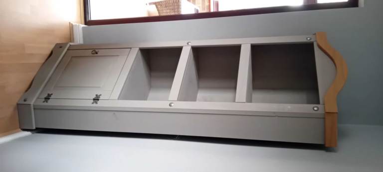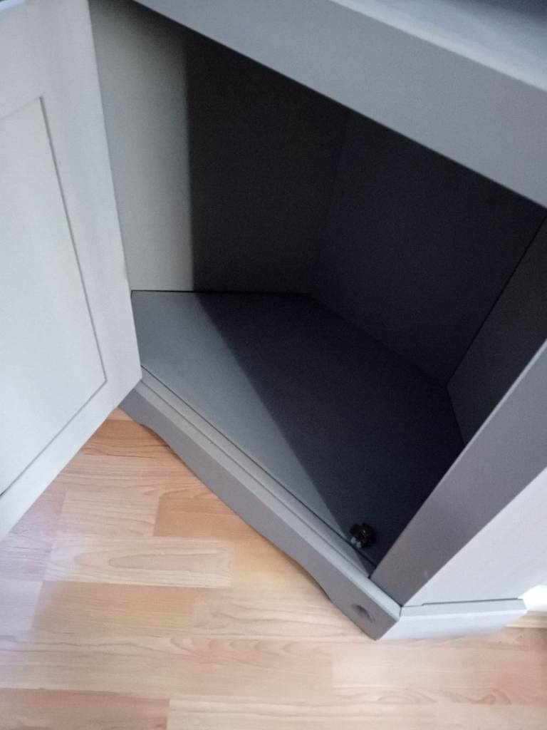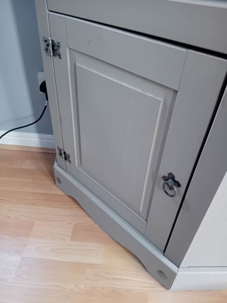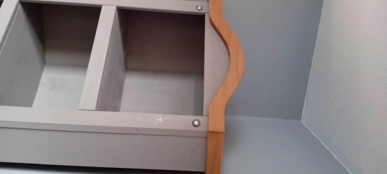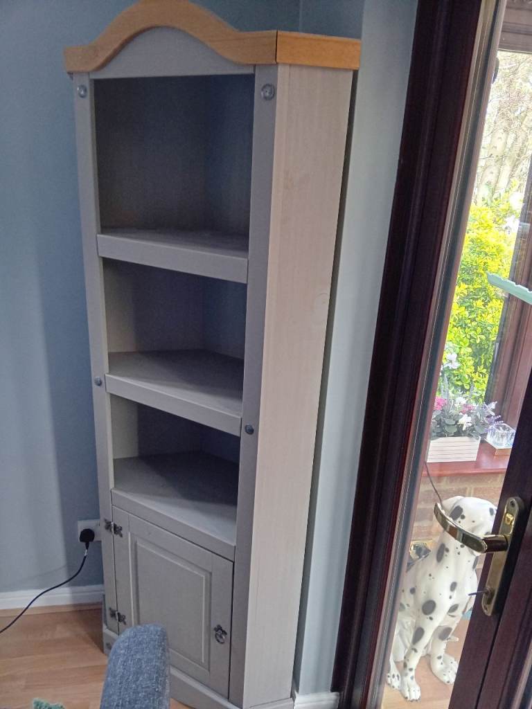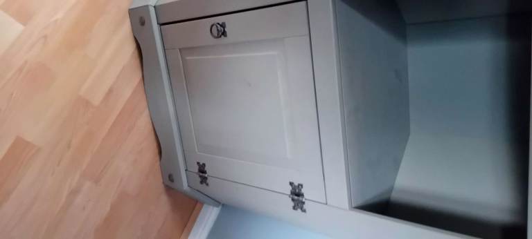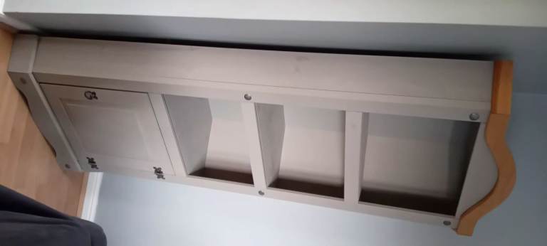 Wooden painted units, cupboard underneath. Corner unit measurements