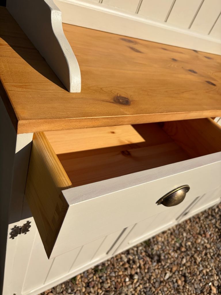 Lovely Welsh dresser in good condition, cream painted base with a natural pine top.