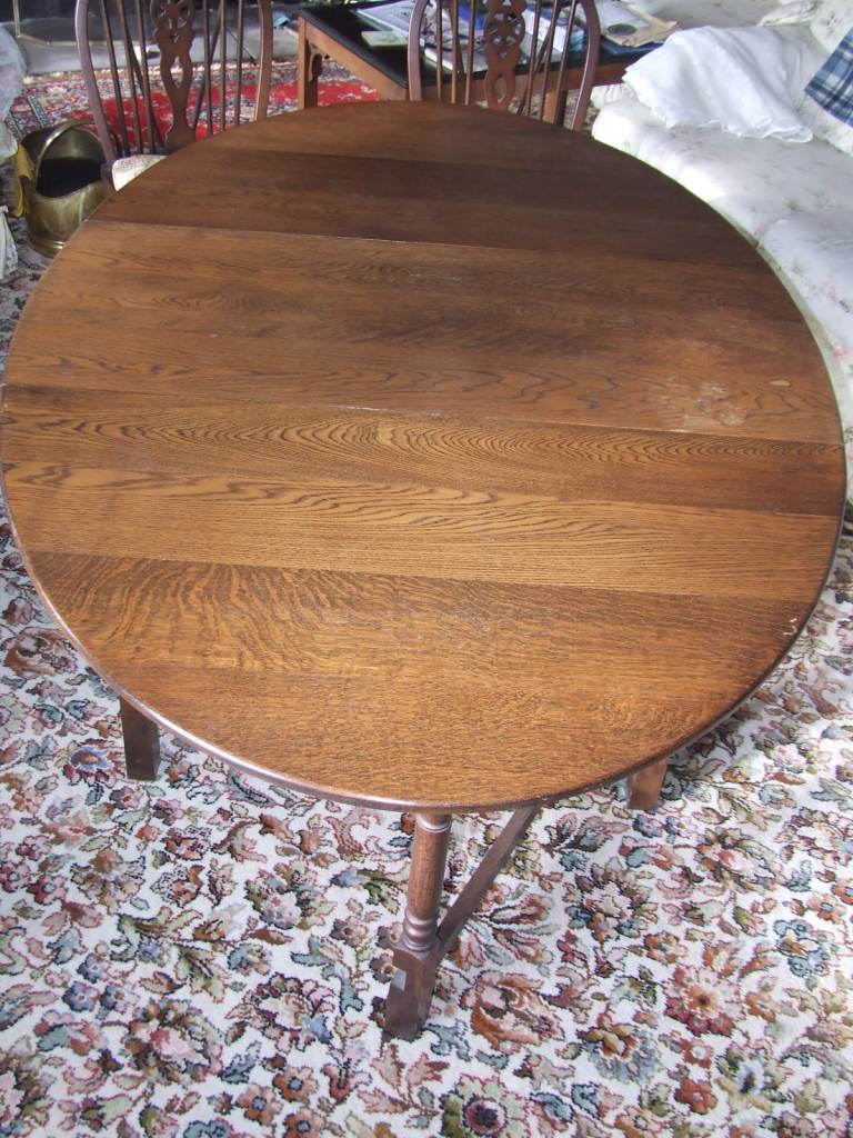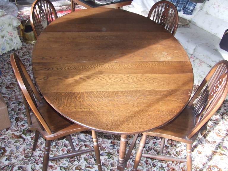 Dark hardwood Oak? Gateleg dining table & 4 wheelback chairs