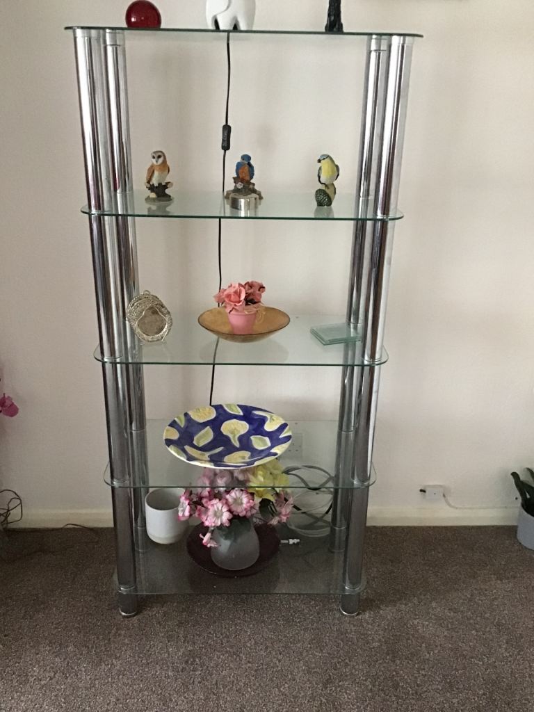 Glass display unit with 5 shelves