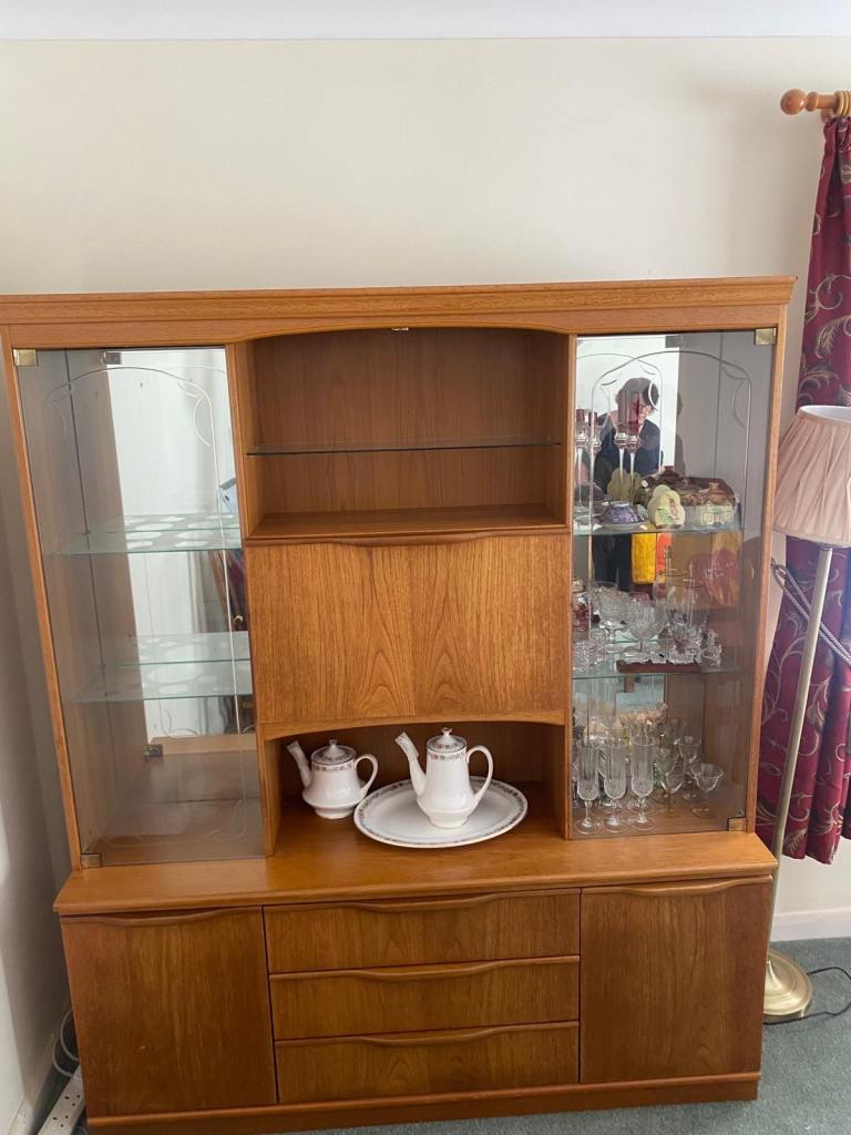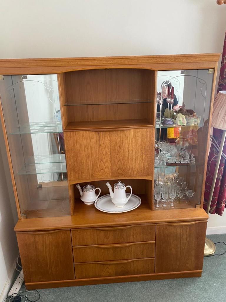 FREE Display/storage cabinet. Very good condition. Dimensions H 182cm, W 151cm, D 42cm.