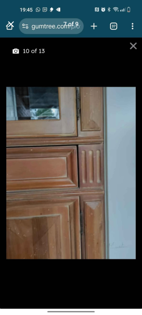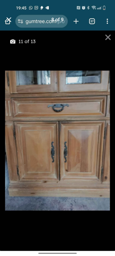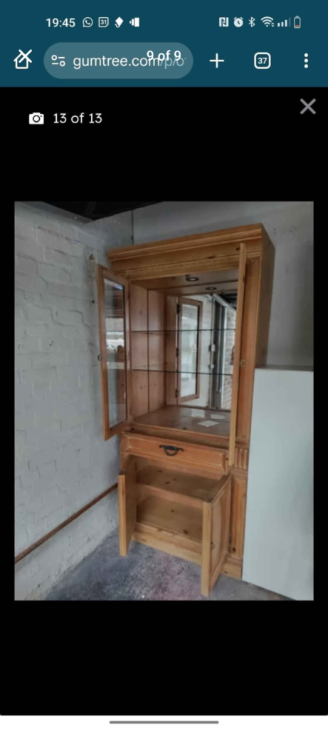 It was a lovely centrepiece in our kitchen for 10 years and works great to store glasses, plates and table linen.