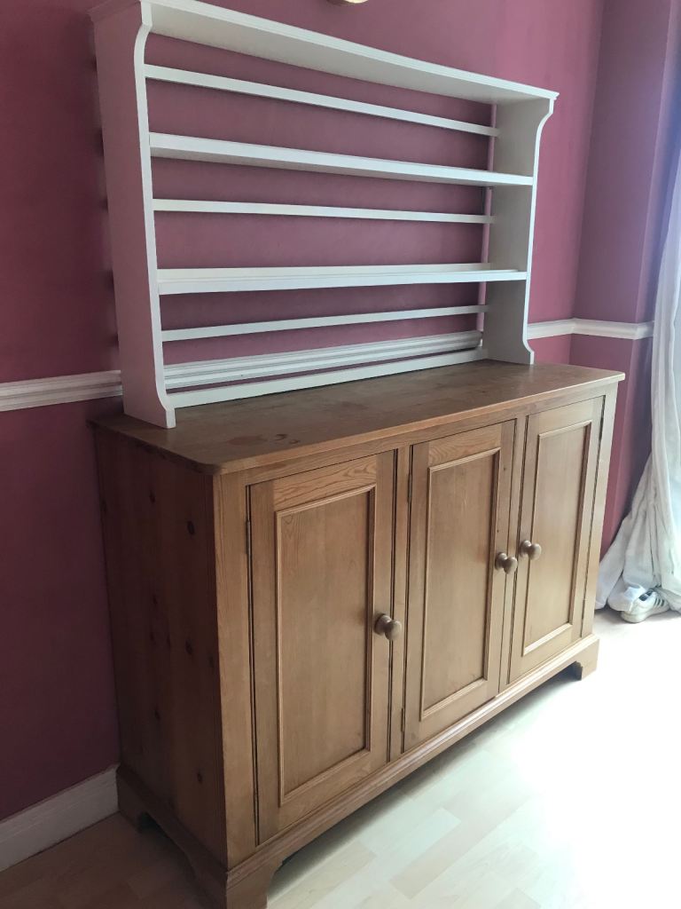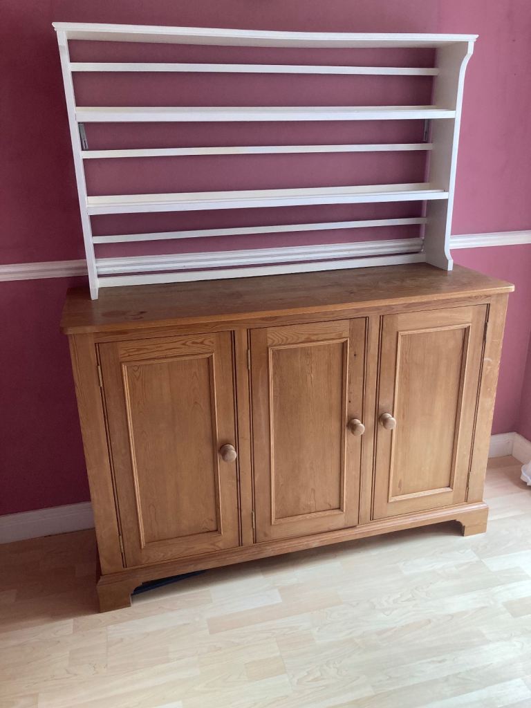 Handmade solid oak, painted white top of dresser. Measures 128cm wide, 76cm high and 19 cm depth.