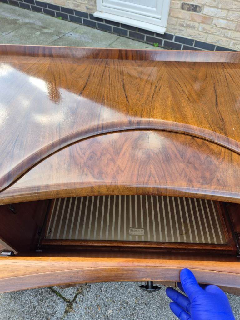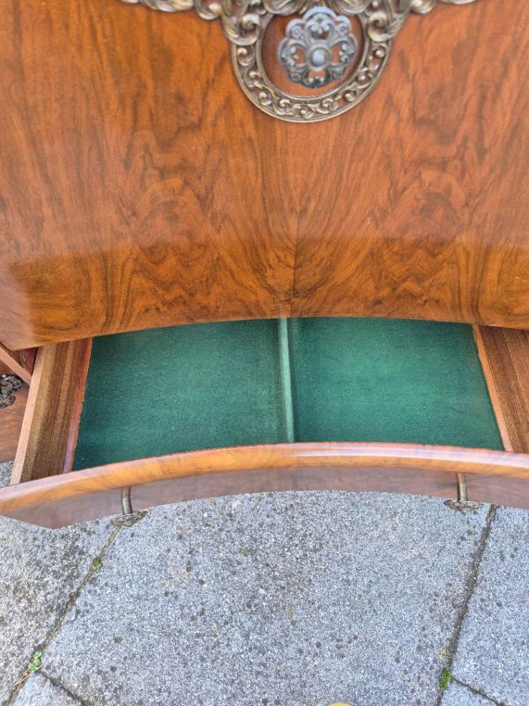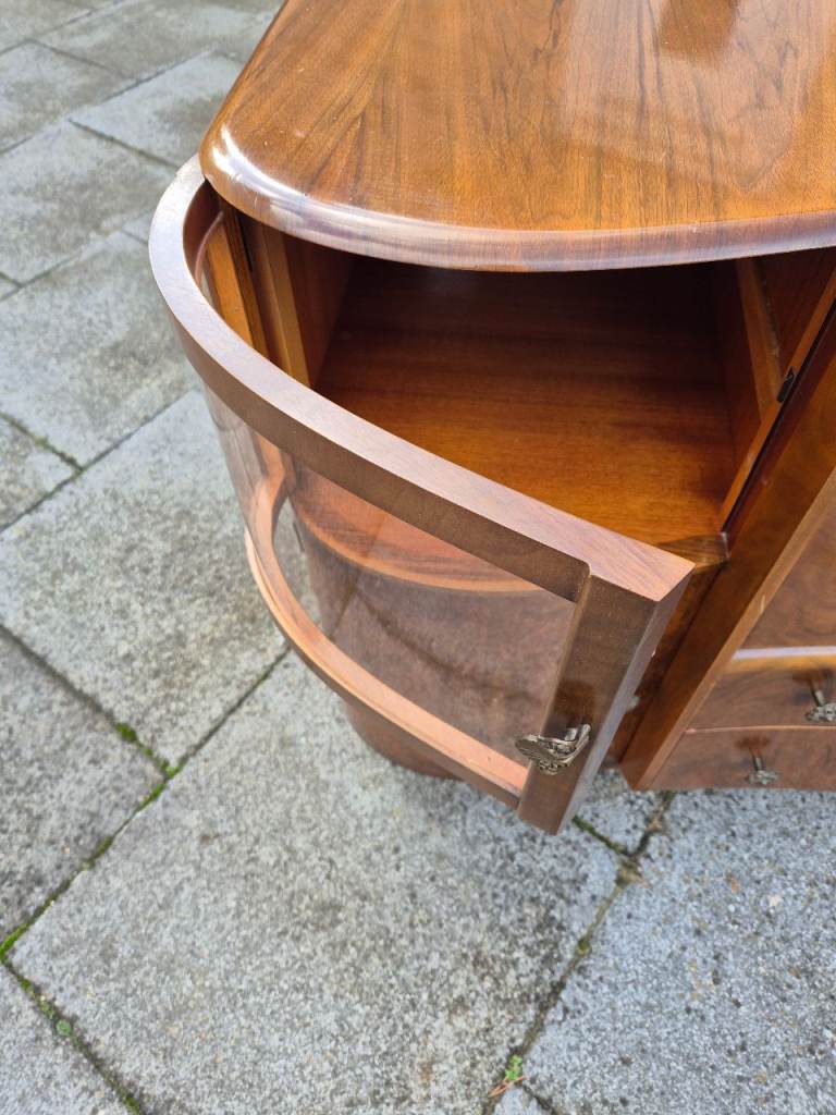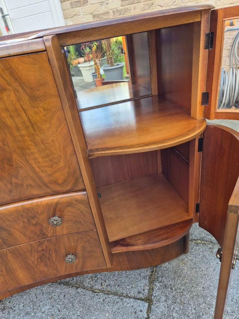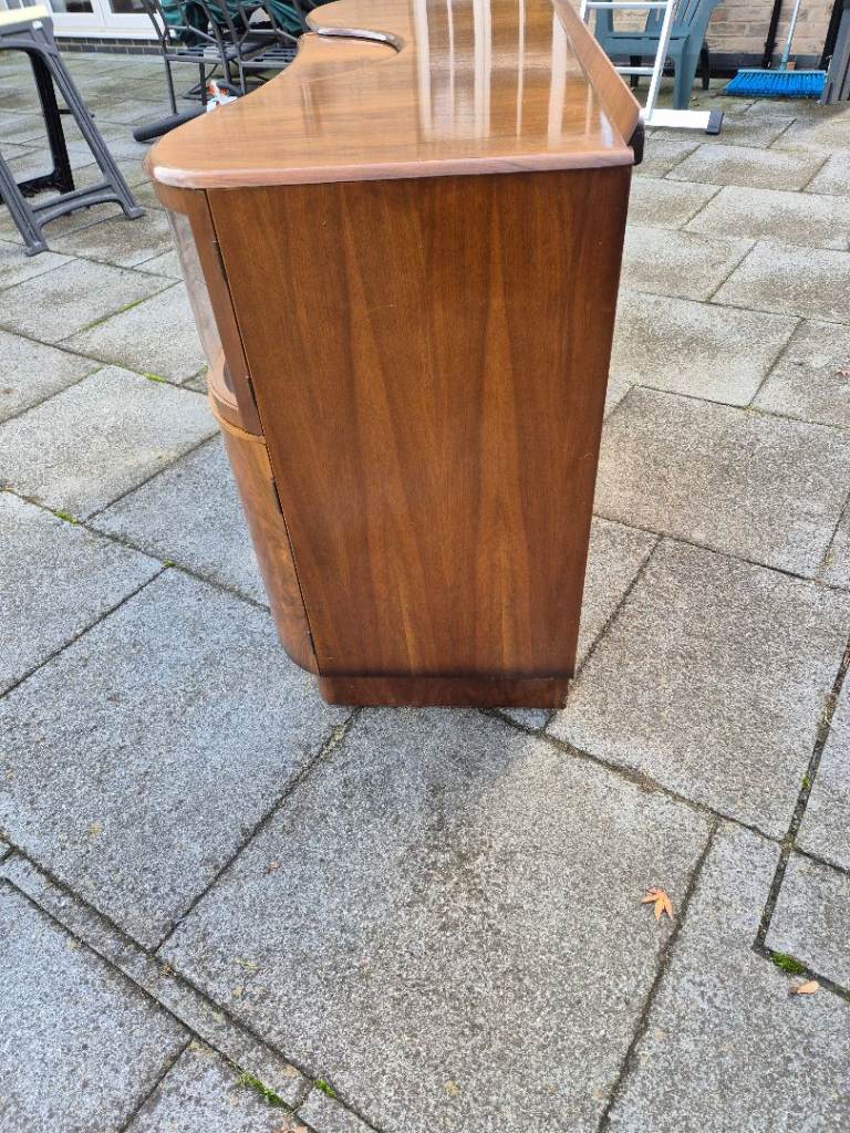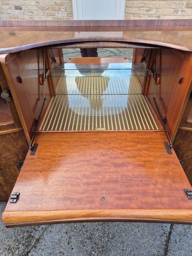 Antique Drinks Sideboard with pull down bar area, 4 side cupboards 2 with curved perspect windows ( looks like glass ) & draws.