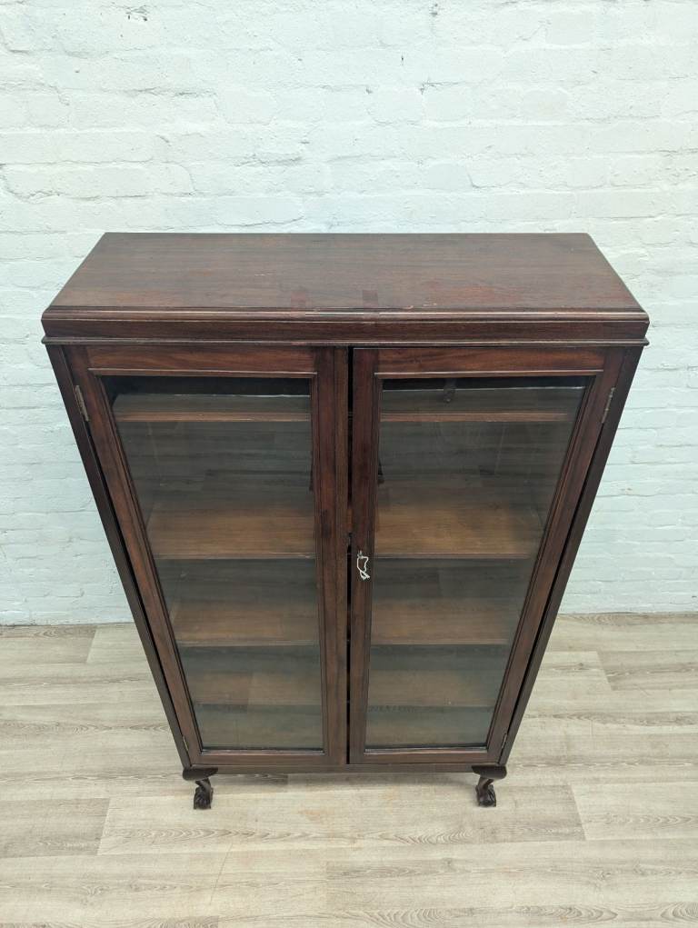 Early 20th century mahogany tall glazed bookcase claw and ball feet