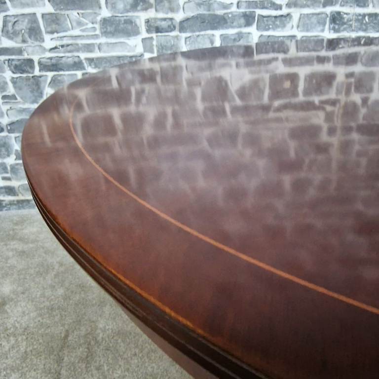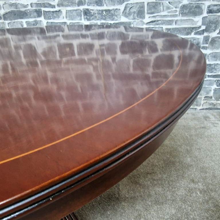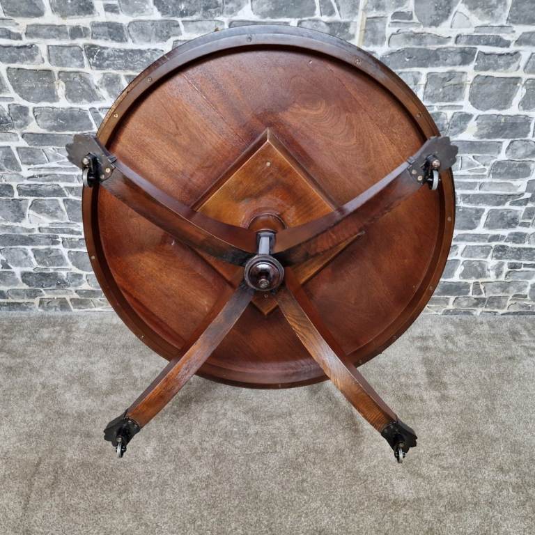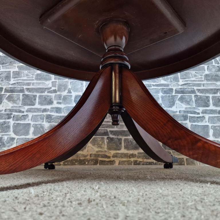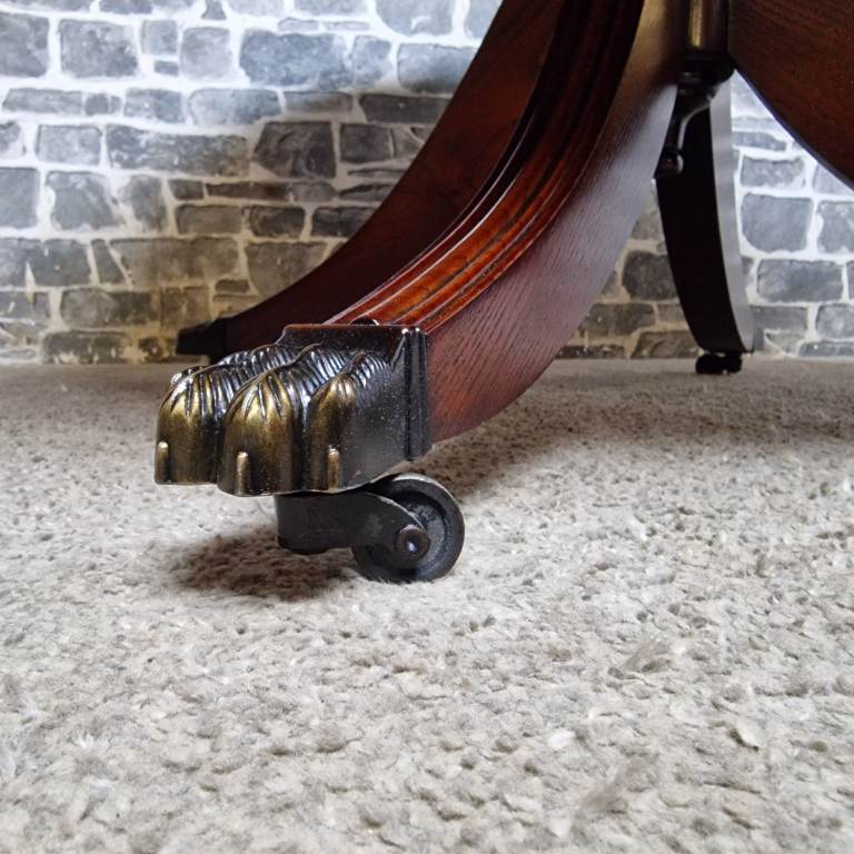 The surface presents very well overall, with a deep polished finish and only light, age-related marks consistent with careful use. The base and legs are sturdy, with no looseness, and the castors roll smoothly. A classic and timeless piece that would suit a traditional living room, library, or lounge setting.