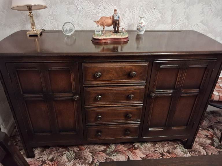 Dark Wood Ercol Sideboard with 2 cupboards and 4 drawers.