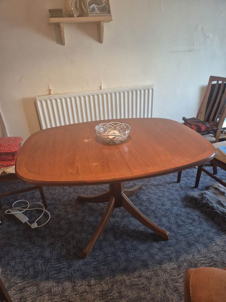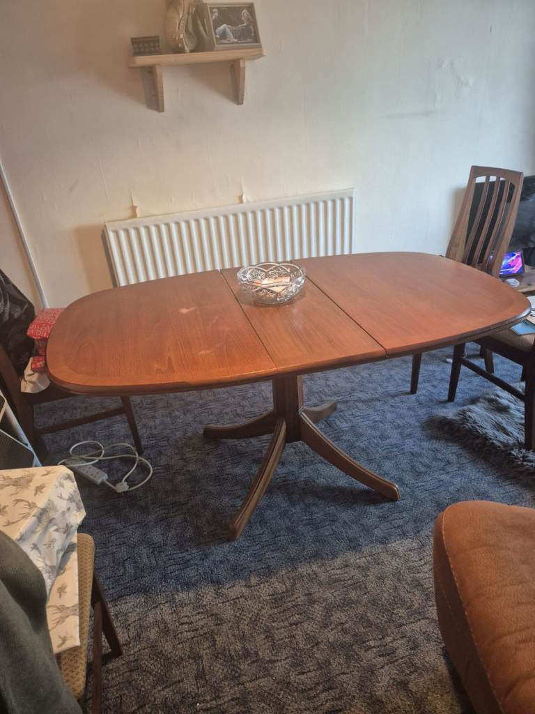 Extending table and four chairs.