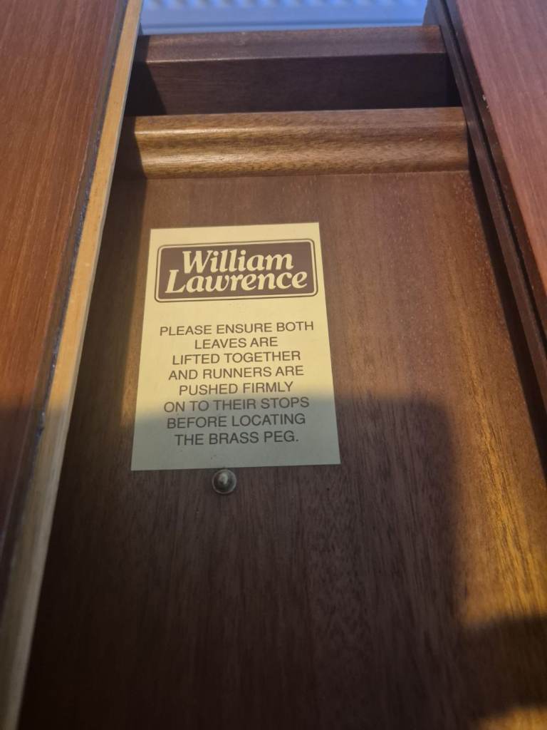 William Lawrence extending table and four chairs.Small blemish on table top.