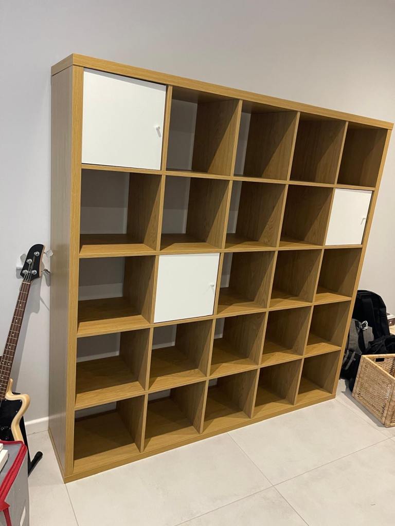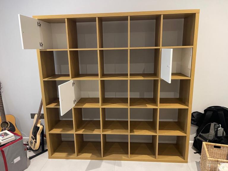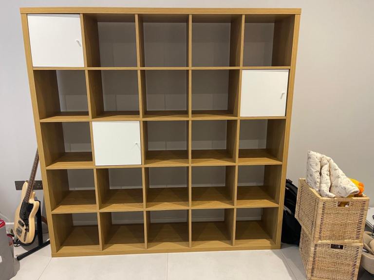 FREE DELIVERY IKEA KALLAX OAK 5x5 SHELVING UNIT WITH INSERTS GREAT CONDITION