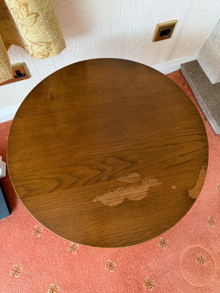 Small wooden side table. Some marks on the top but otherwise in lovely condition. Free to collect from Sully.