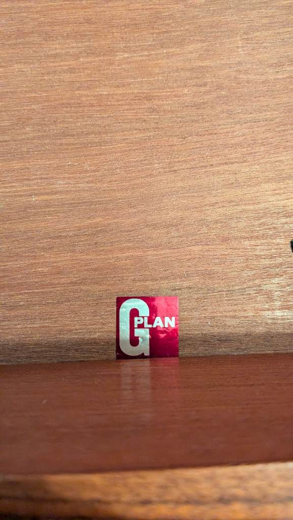 There are minor knocks and scuffs here and there. Overall, the wear and tear is light and in line with what you would expect with a vintage piece of this age and nature. The unit is well-made and the G Plan label can be seen on the inside of the main drawer.