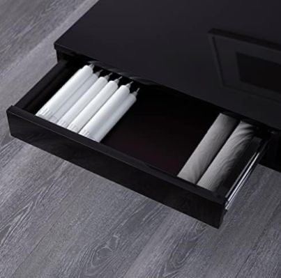 The High Gloss Coffee Table from IKEA is a stylish and practical addition to any living room. Its sleek black finish gives it a modern and contemporary look, perfect for creating a minimalist and chic space. With dimensions of 95 cm in length and width, this coffee table provides ample space for drinks, snacks, and decor. The added storage feature allows you to keep items neatly organised while still maintaining a clean and tidy living room.
