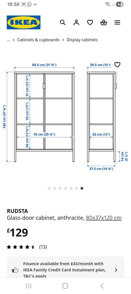 Ikea Rudsta drinks/display cabinet in anthracite.