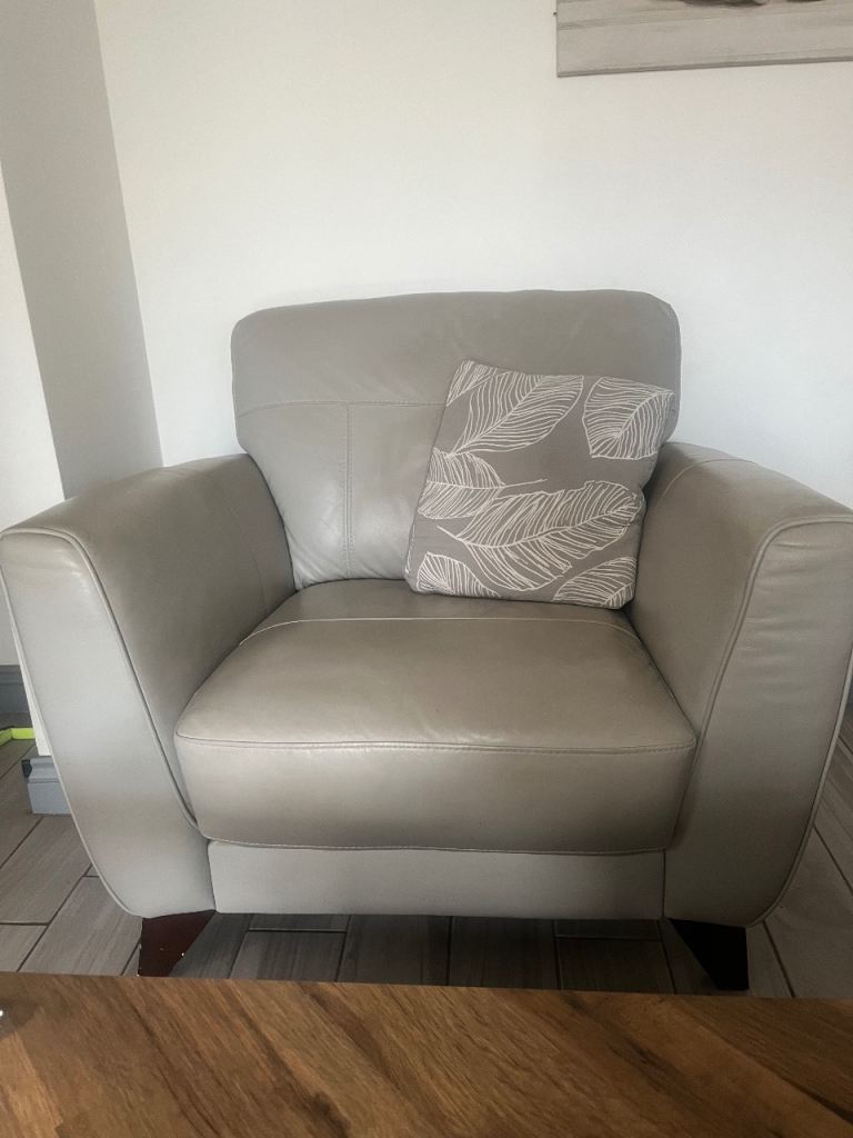 Excellent condition and very comfortable armchair . Hardly used and only for aesthetic purposes ! Will compliment all colour schemes and other furniture pieces ! Stated grey but very light in colour almost like stone ! Collect only