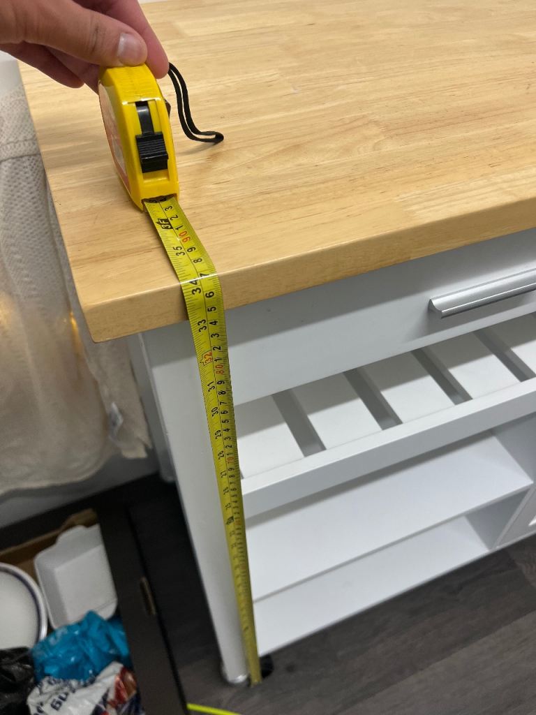 Measurements in the pictures but it’s small enough that it doesn’t take up too much space but still has plenty of storage inside!