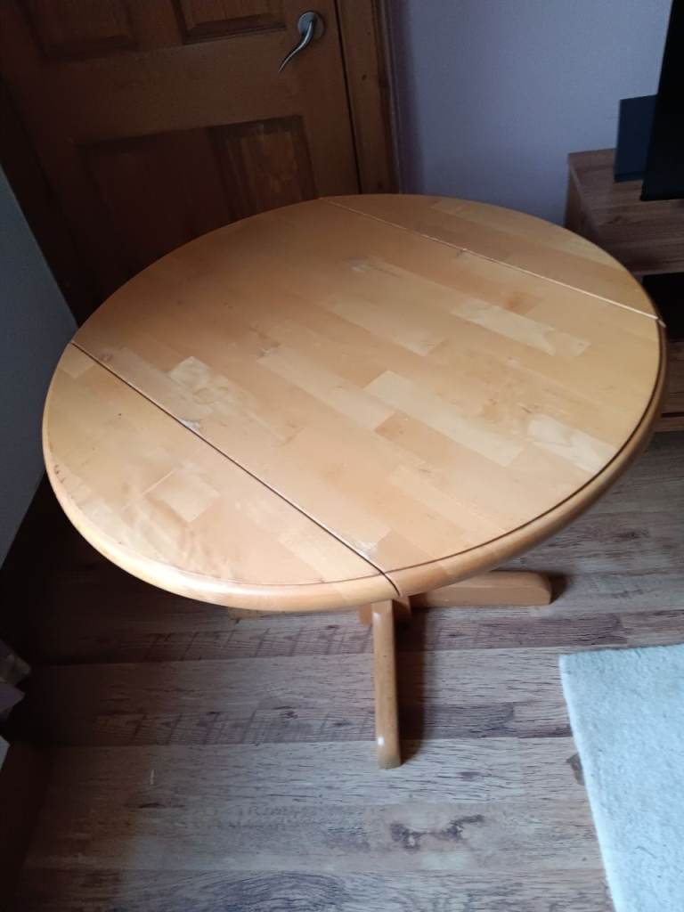 Attractive table which can be folded down. Measures 90cms extended 55cms folded 75 cms tall. Buyer uplifts from ground floor.