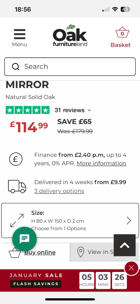Great condition . Oak furniture land large mirror. £40 Dimensions in pic above.