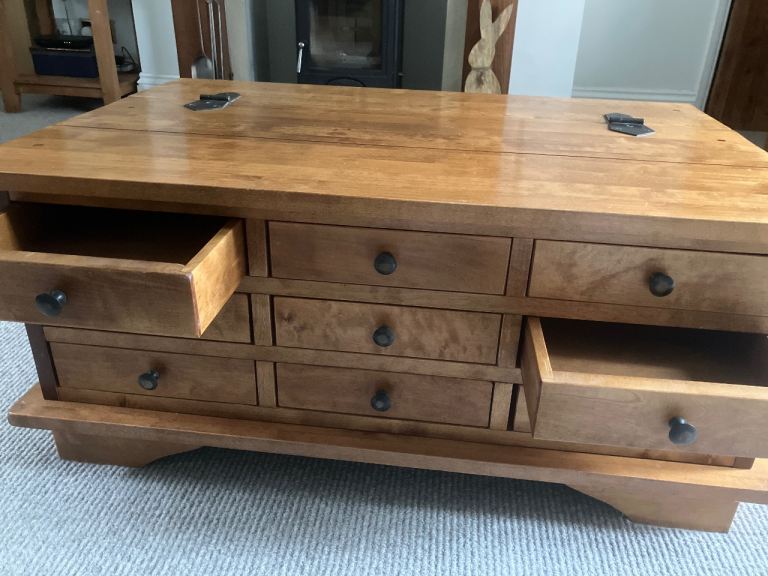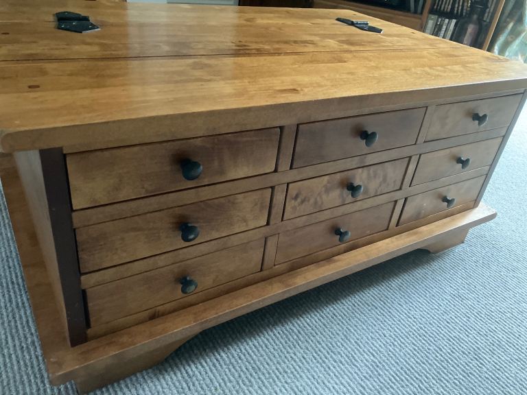 60 cm wide 90 cm long 40 cm tall. Beautiful Laura Ashley coffee table- very good condition - small puppy marks in one corner - see picture otherwise great condition . I have owned from new and they still make this range and sell in John Lewis and next for £650. Buyer collect - smoke free home