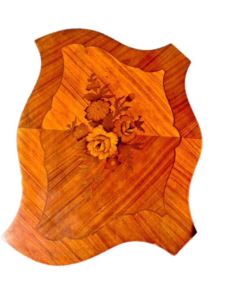 It features intricate floral inlay, elegant cabriole legs, and detailed brass mounts.
