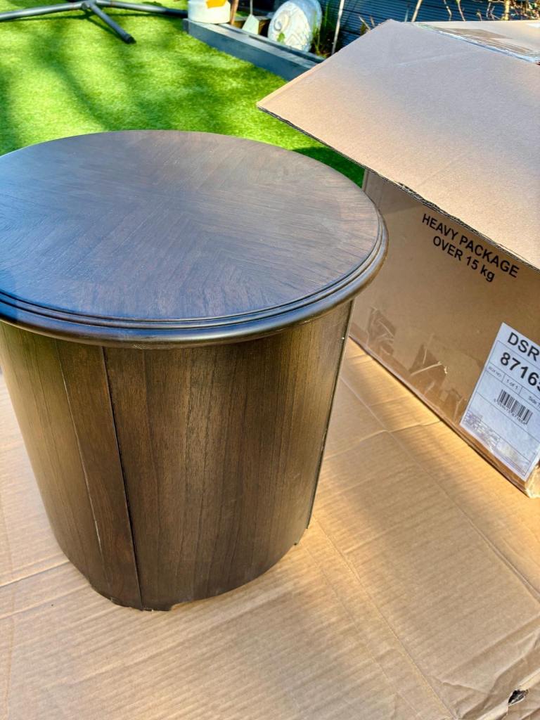 Matola Dark Wood Drum Side Table