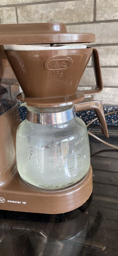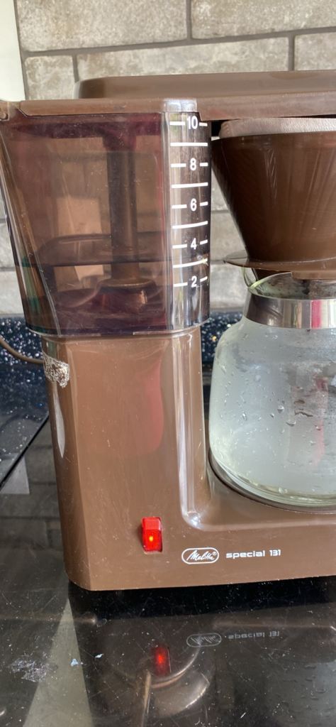 A retro coffee machine which uses filter bags (some included). Machine is in good working order and makes a nice, HOT cup of coffee. I now have a new machine and this has been sitting in the cupboard for the last 3 years, but I’ve tested it and it’s fine!