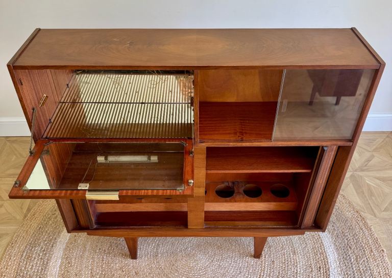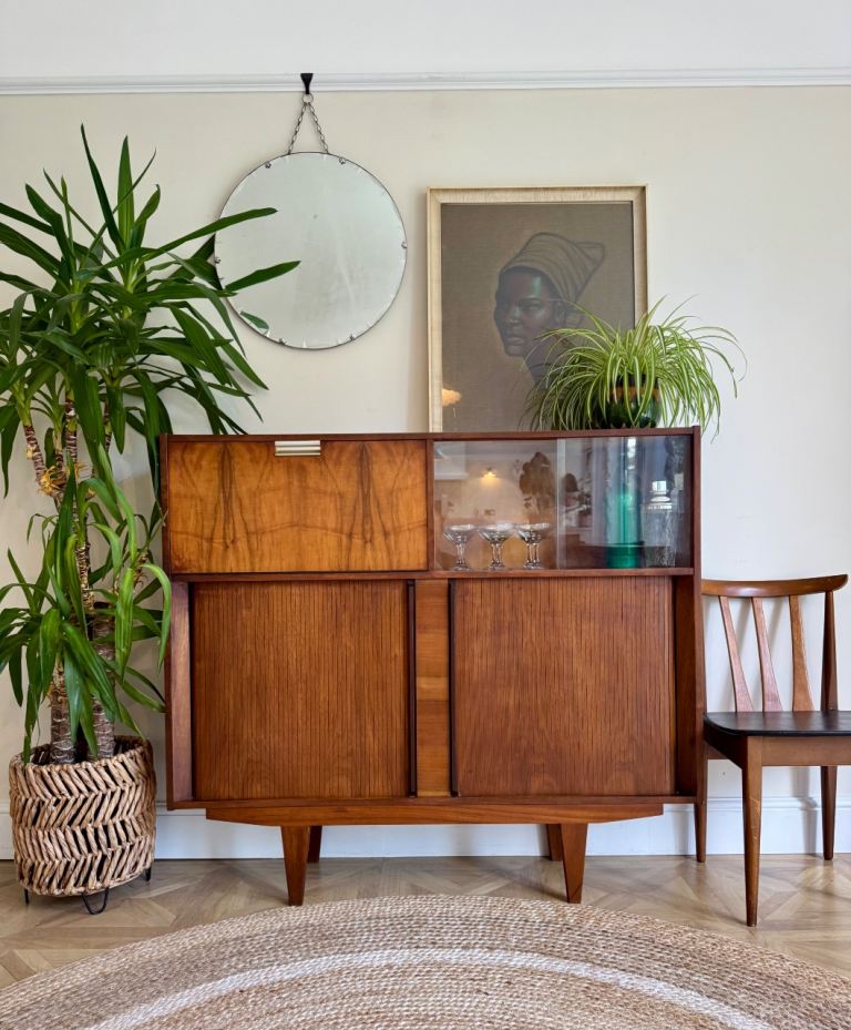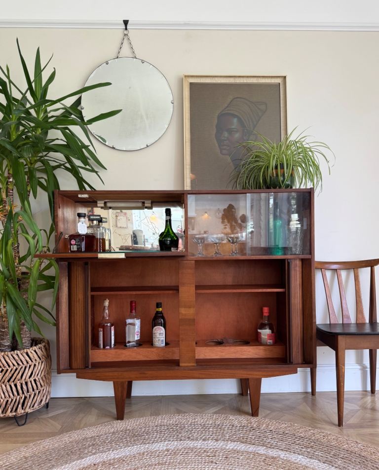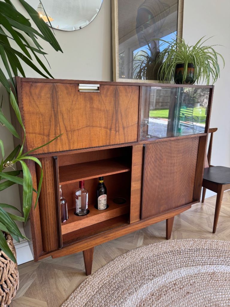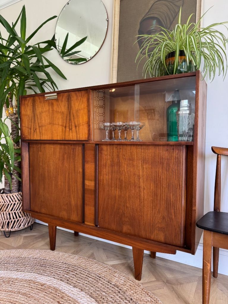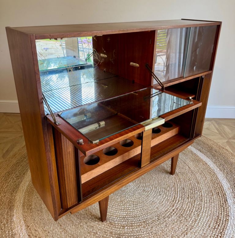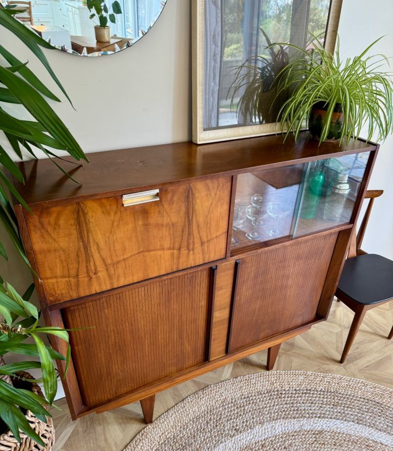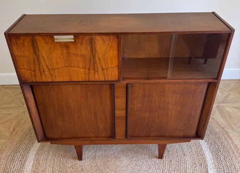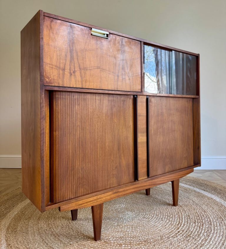 Mid century vintage retro tambour door drinks cocktail cabinet