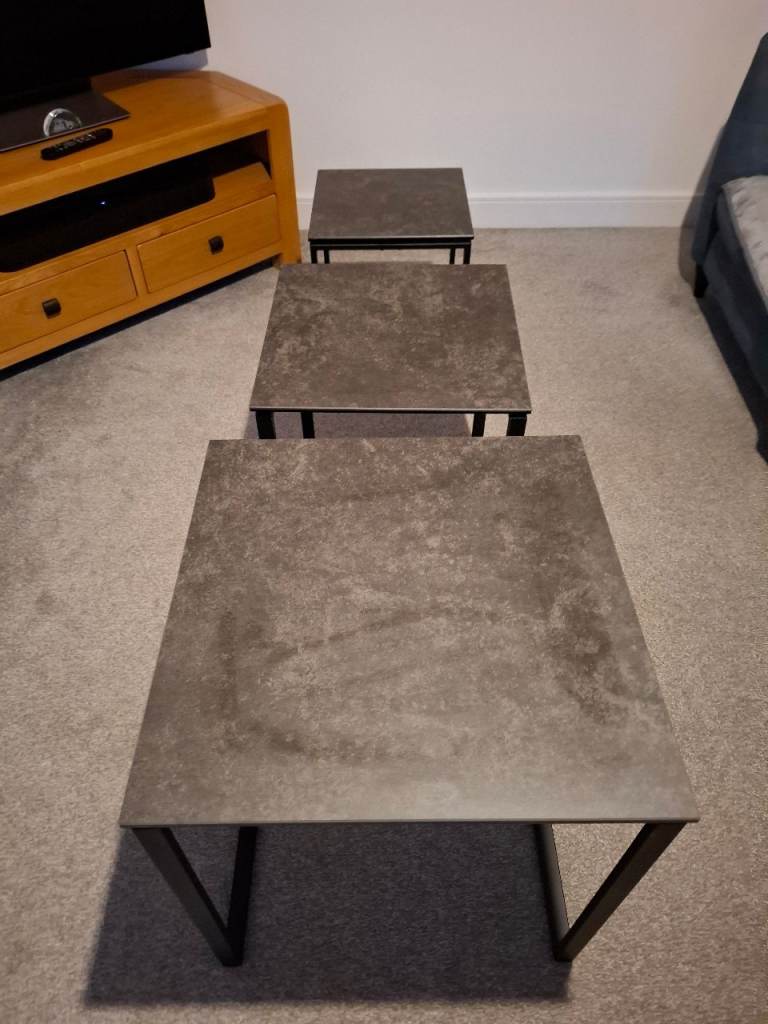 Good condition overall there are a couple of small marks on the small & Medium table shown on the photos.