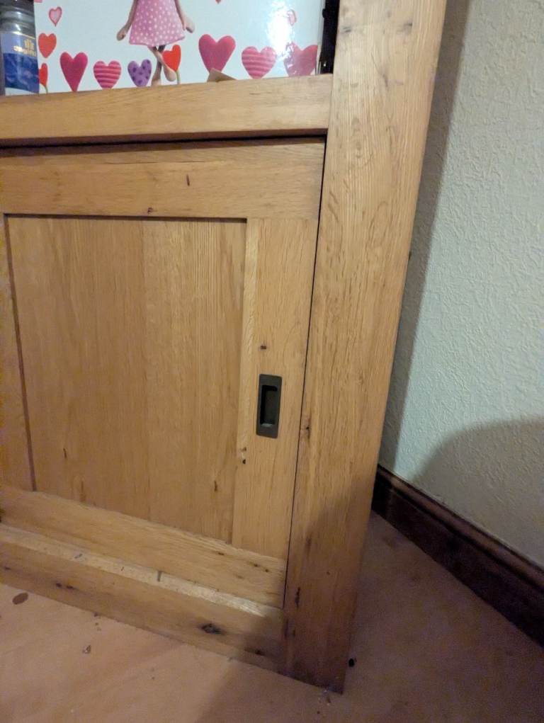 Next Hudson Corner Unit. Solid oak wood. Very heavy, and solid wood. Originally cost over £400. Wouldn't fit in a standard car and would need 2 strong people to carry. Back panel on one side has been removed due to needing to feed wires but panel just needs to be nailed back on. Collection only from Llangyfelach