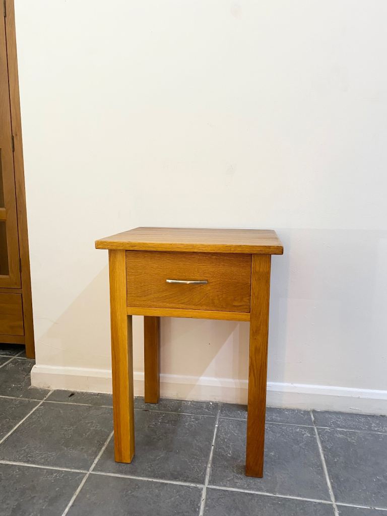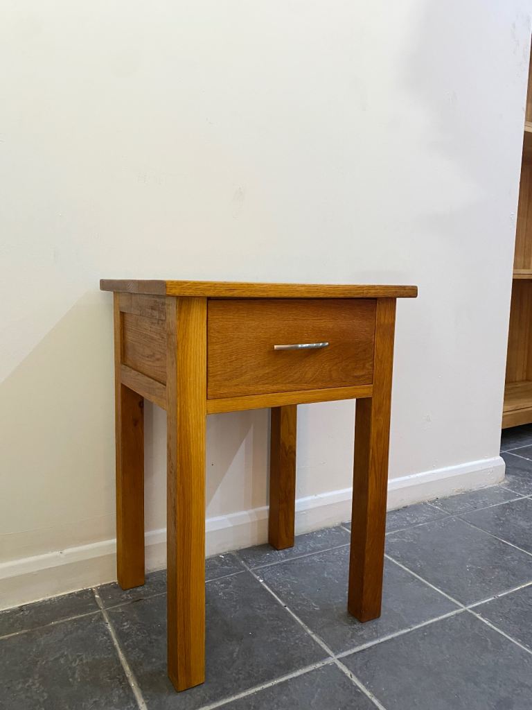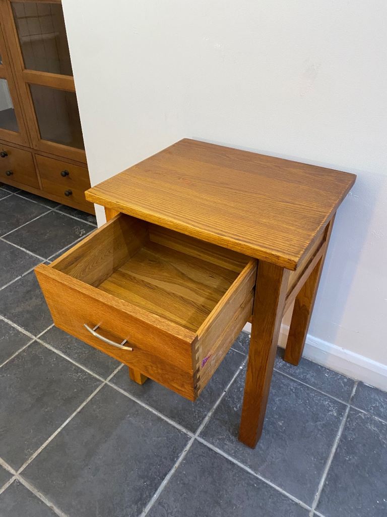 Fully oak made, Dove Tailed Drawer , Drawer is working perfectly, solid and sturdy, Good Condition.