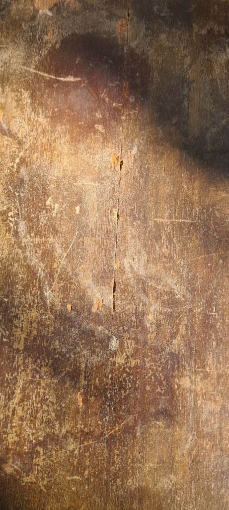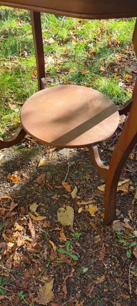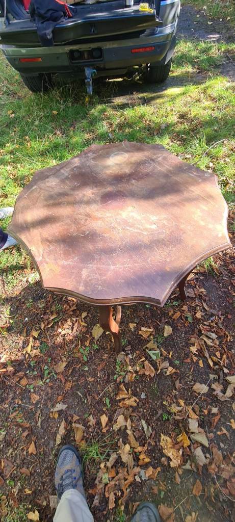 Vintage mahogany scalloped octagonal table needi ng TLC. Some damage.