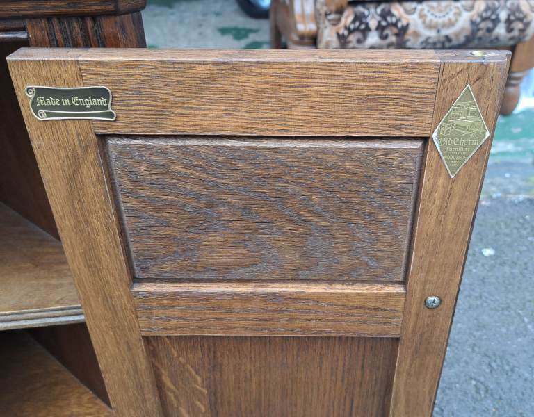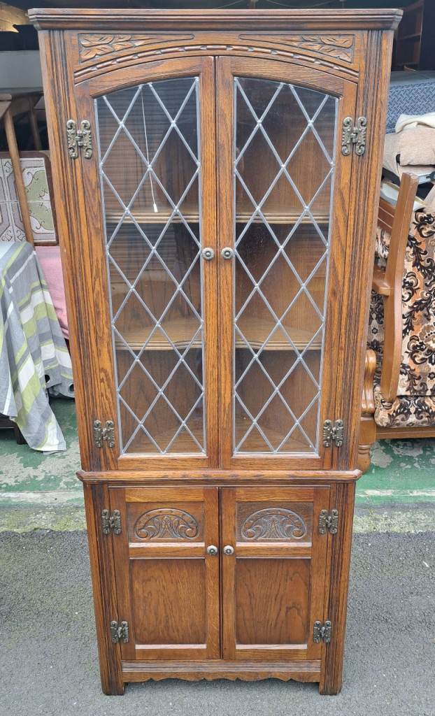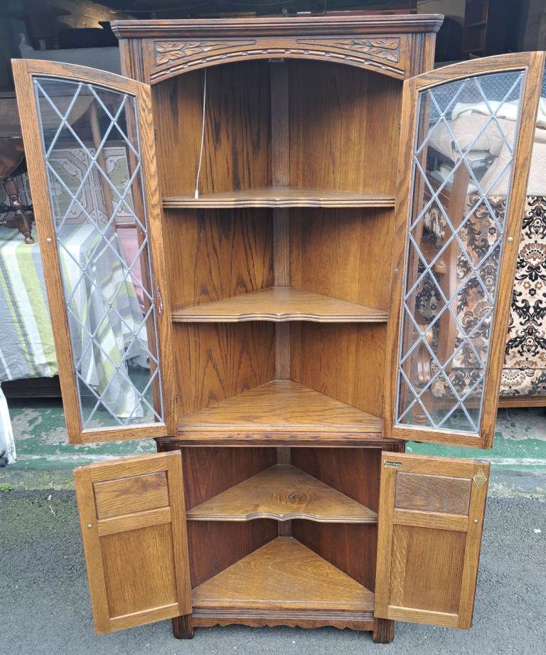 Old Charm Oak Corner Cabinet in nice condition as pictured.