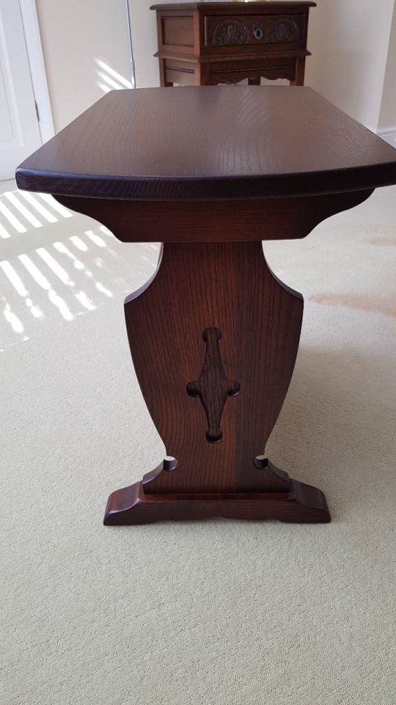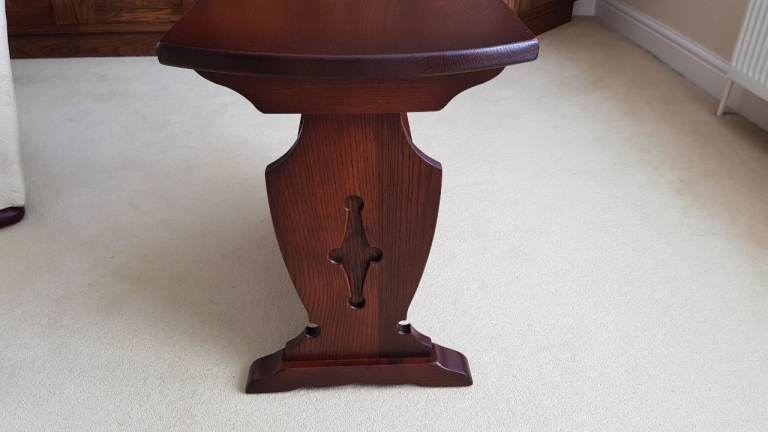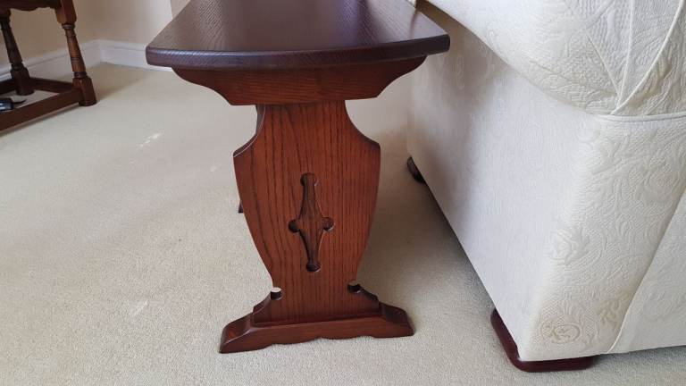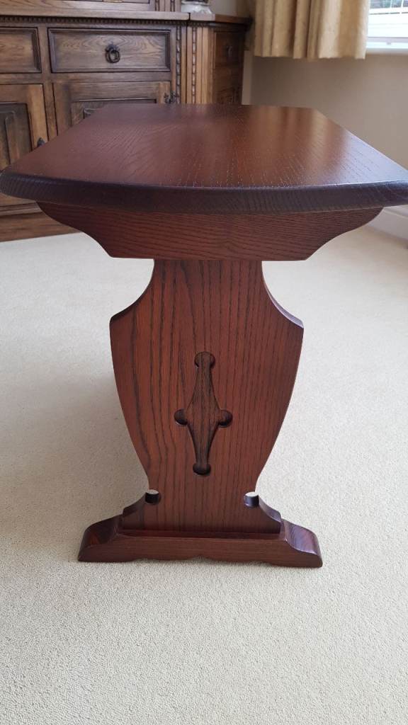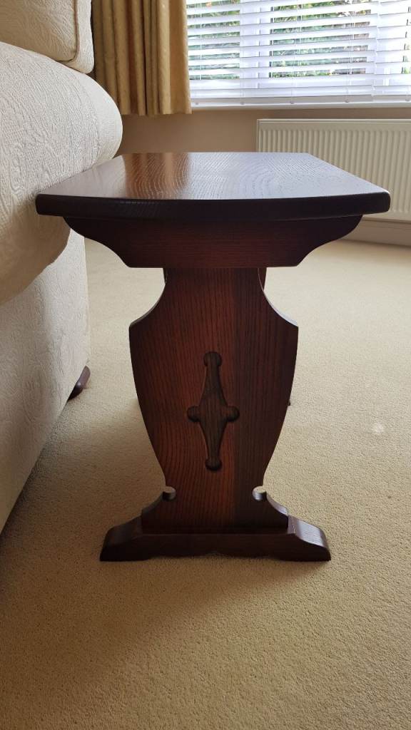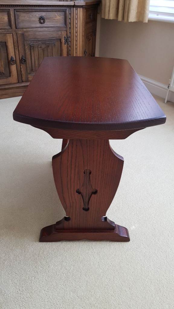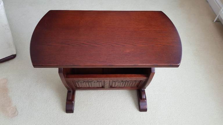 Old Charm solid oak magazine rack side lamp table with hand carved detail and linen fold panels.