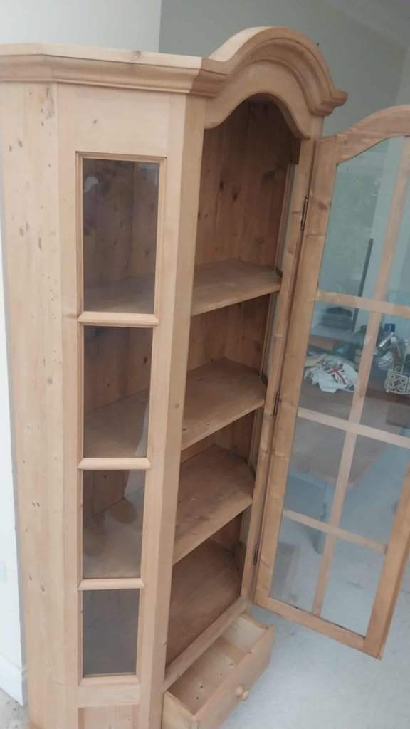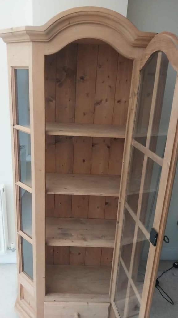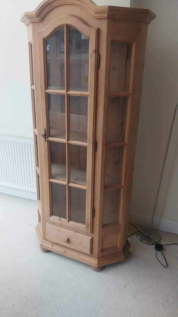 Antique style corner display cabinet, good condition. 33x 80, h 180cm. Delivery possible for a fee or collection bn164at.