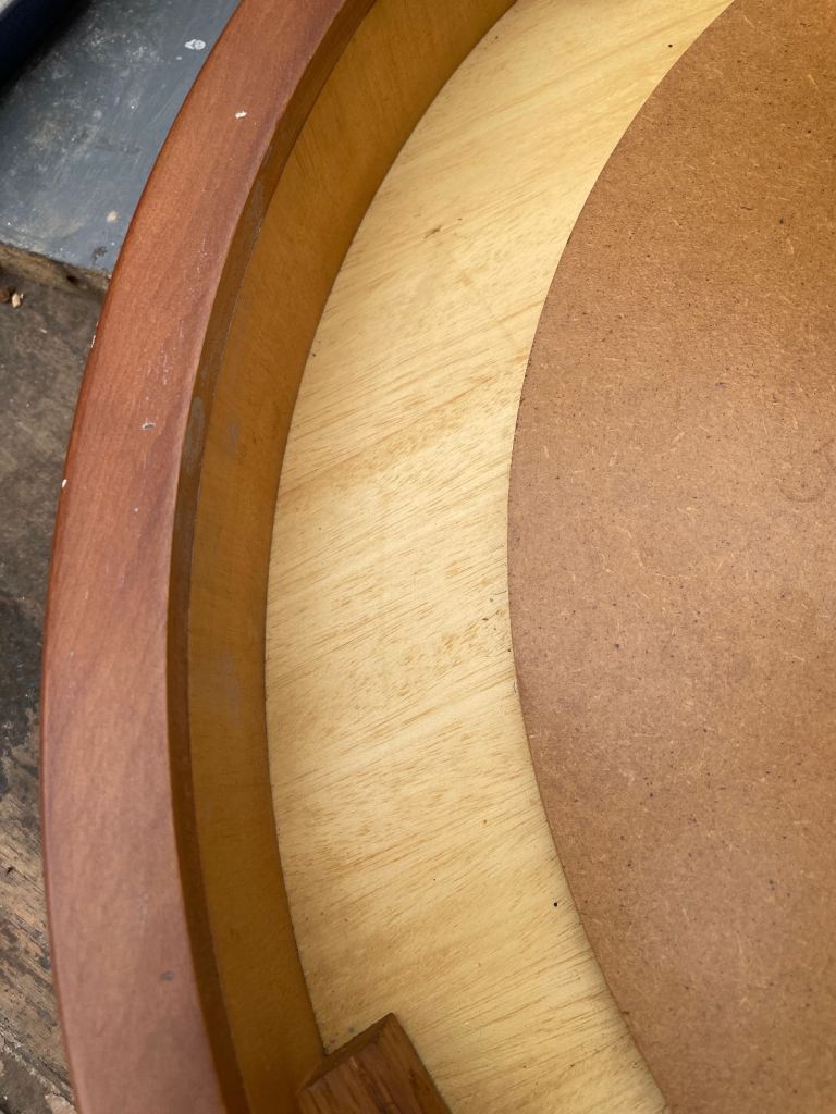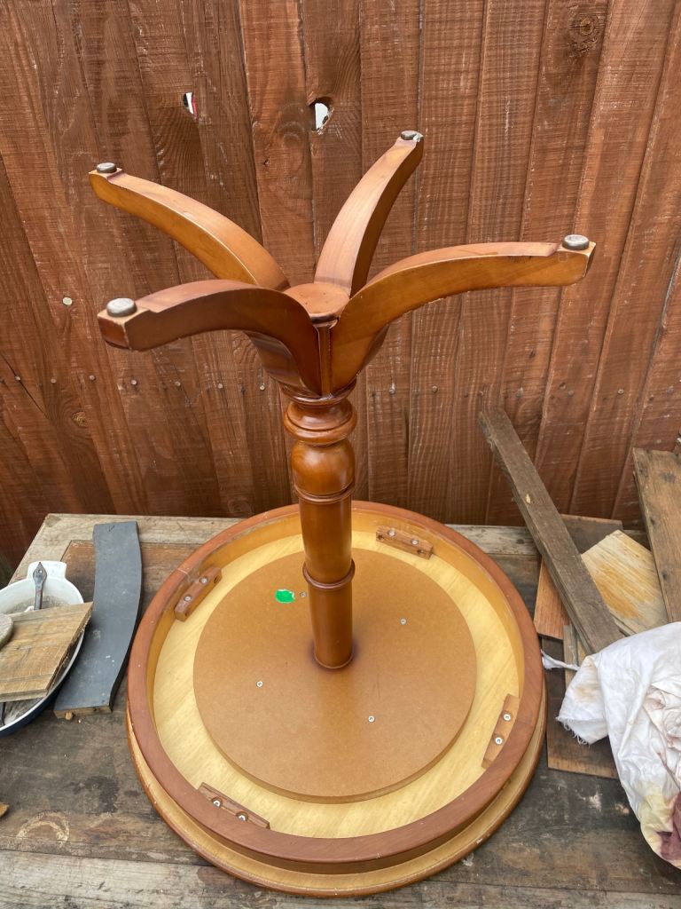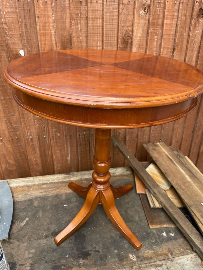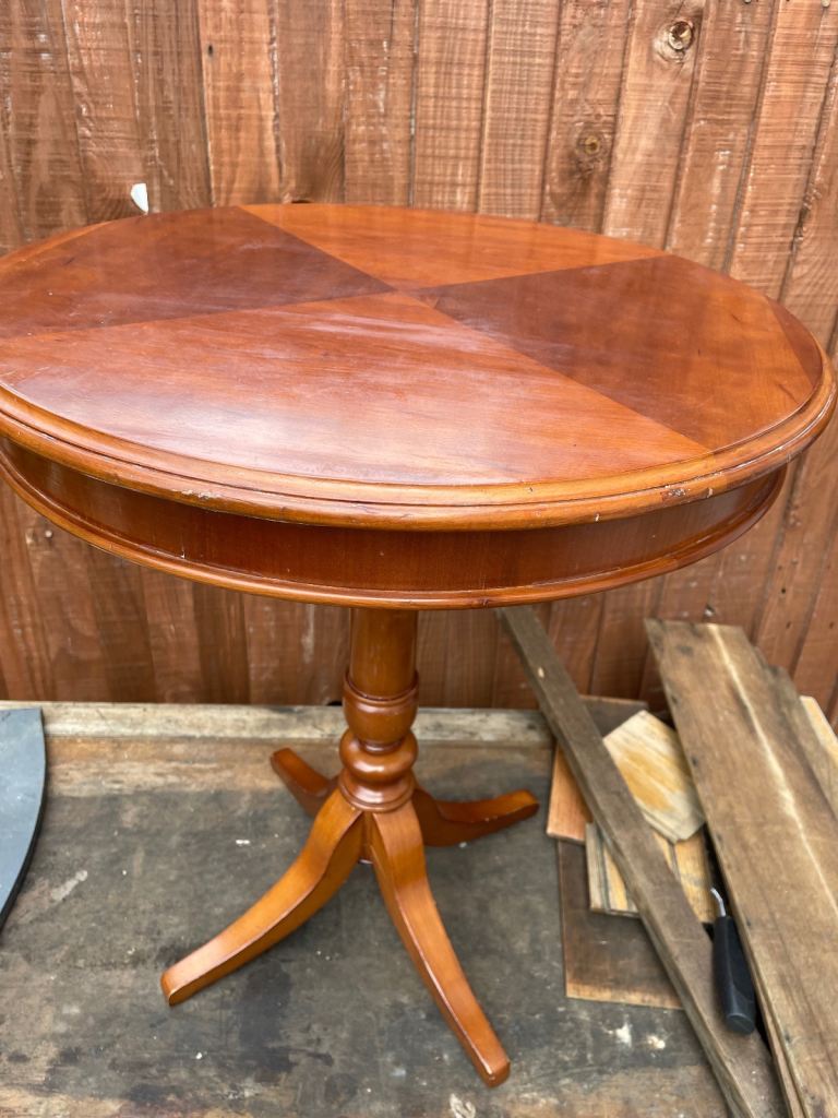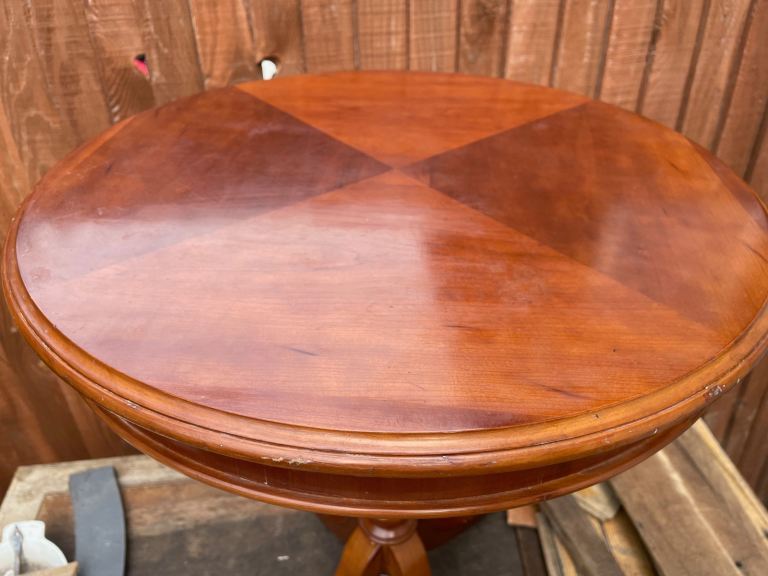 This has quite a tough varnish applied, possibly PVA based. Few marks as shown in pictures but is a solidly constructed table a reasonable condition.