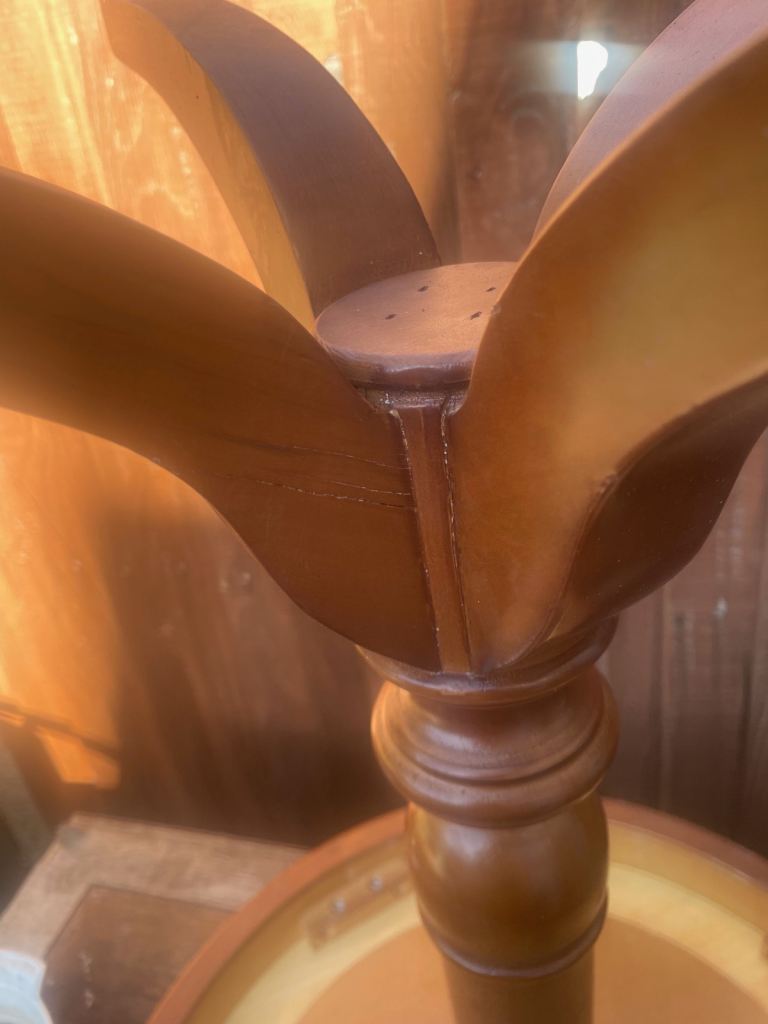 One of the legs has been repaired. Please see pics.