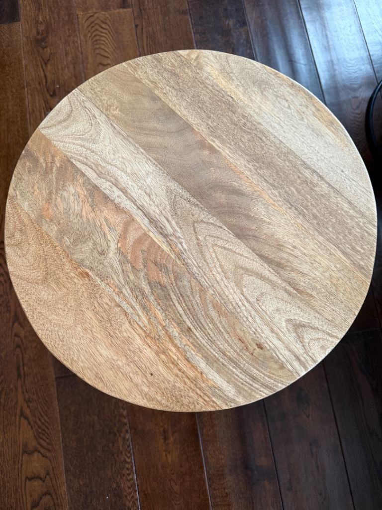 Posting for 9+ yearsRustic Mango Wood Side Table – Black Metal Base, Good Condition