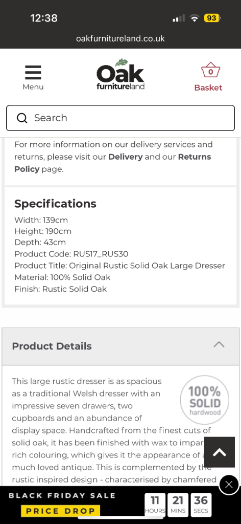 Rustic Solid Oak Dresser From Oak Furniture Land RRP £949 Possible Delivery