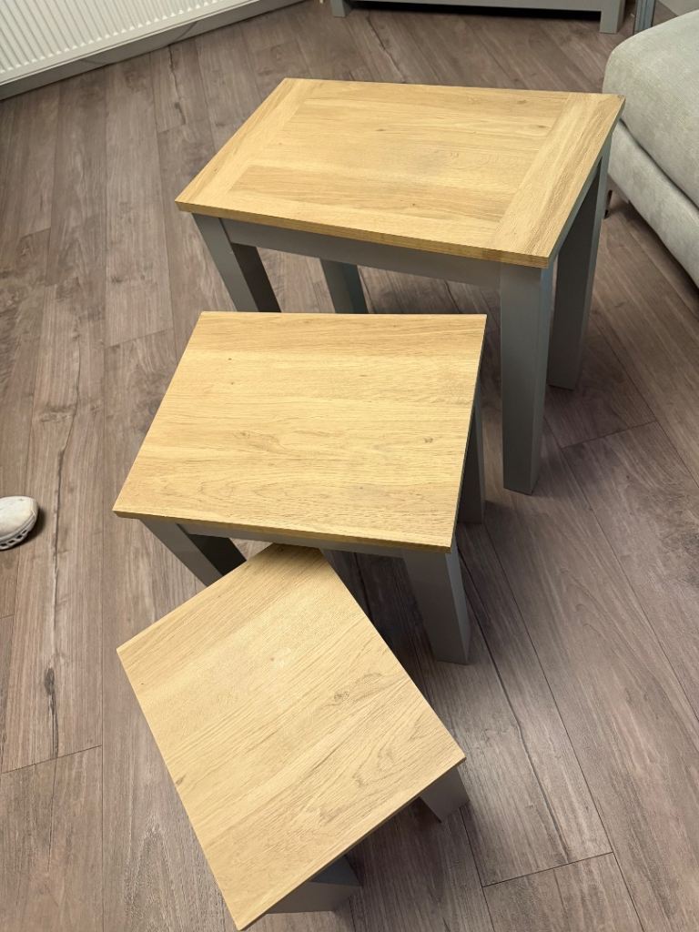 Next Dove Grey Malvern Oak Effect Rectangle Set of 3 Nest of Tables