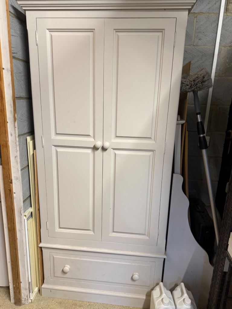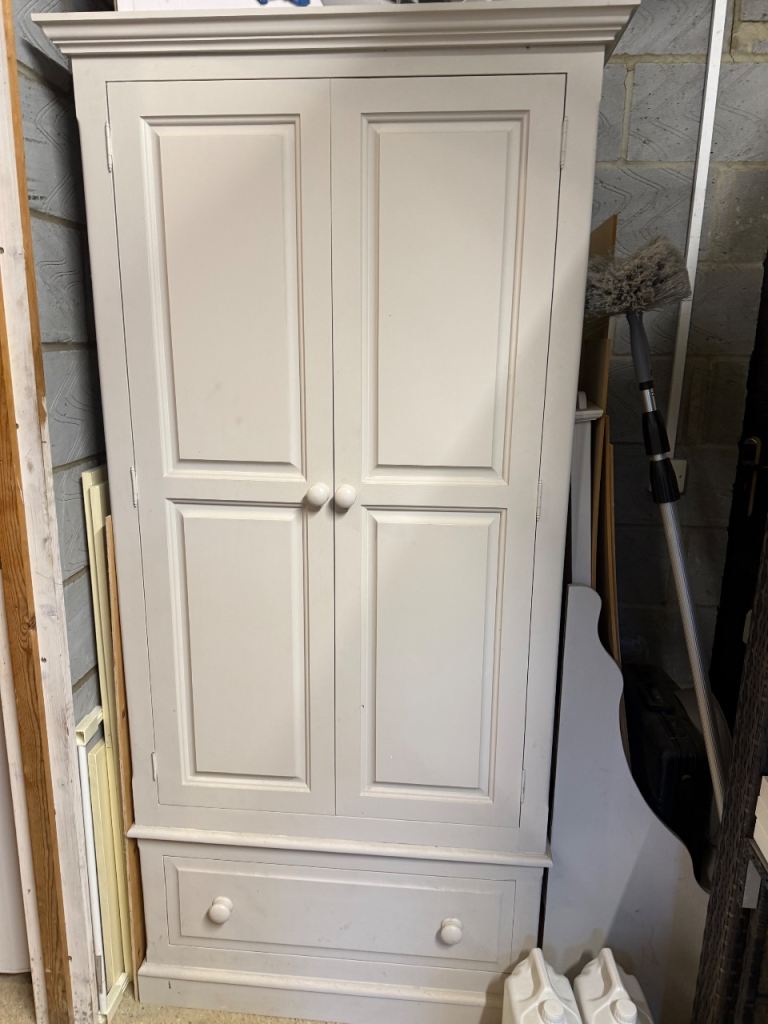 Shabby chic Large solid wood wardrobe. Off white in farrow and ball colour