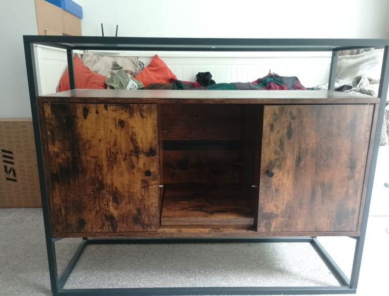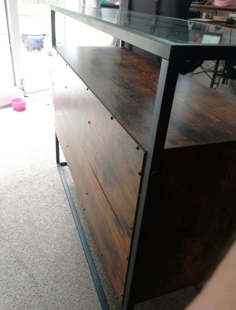 Posting for 11+ yearsSide board , dark colour , glass top