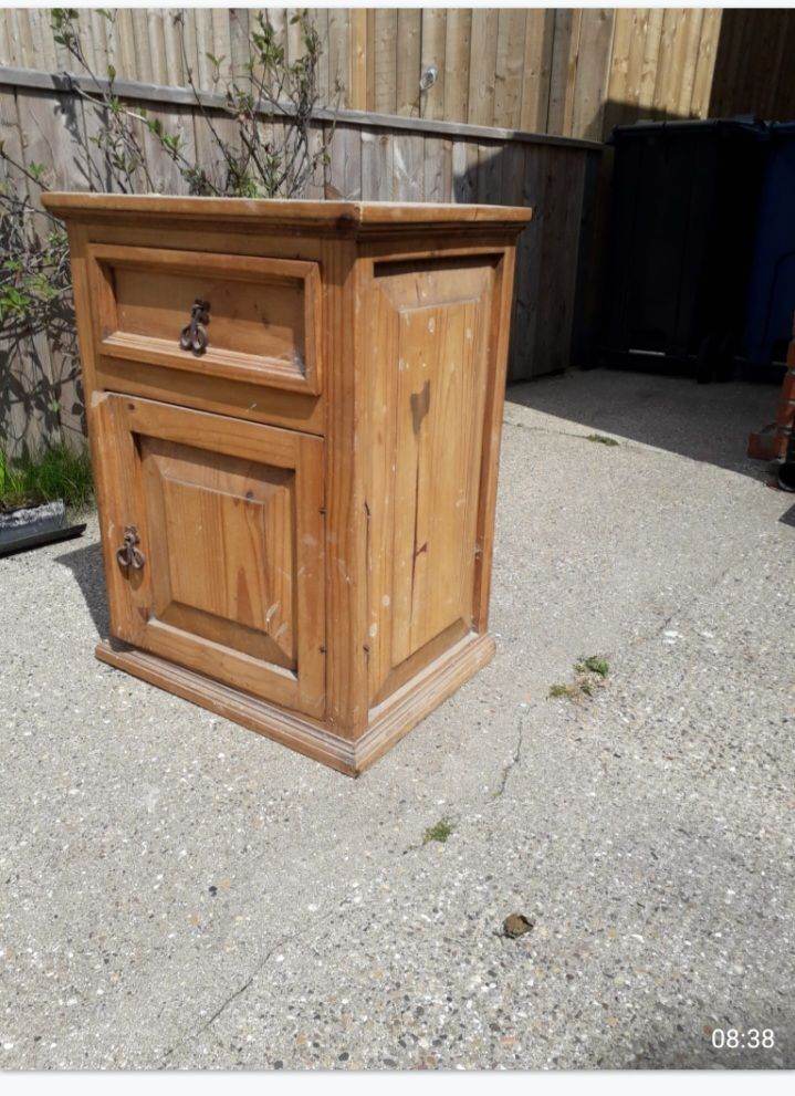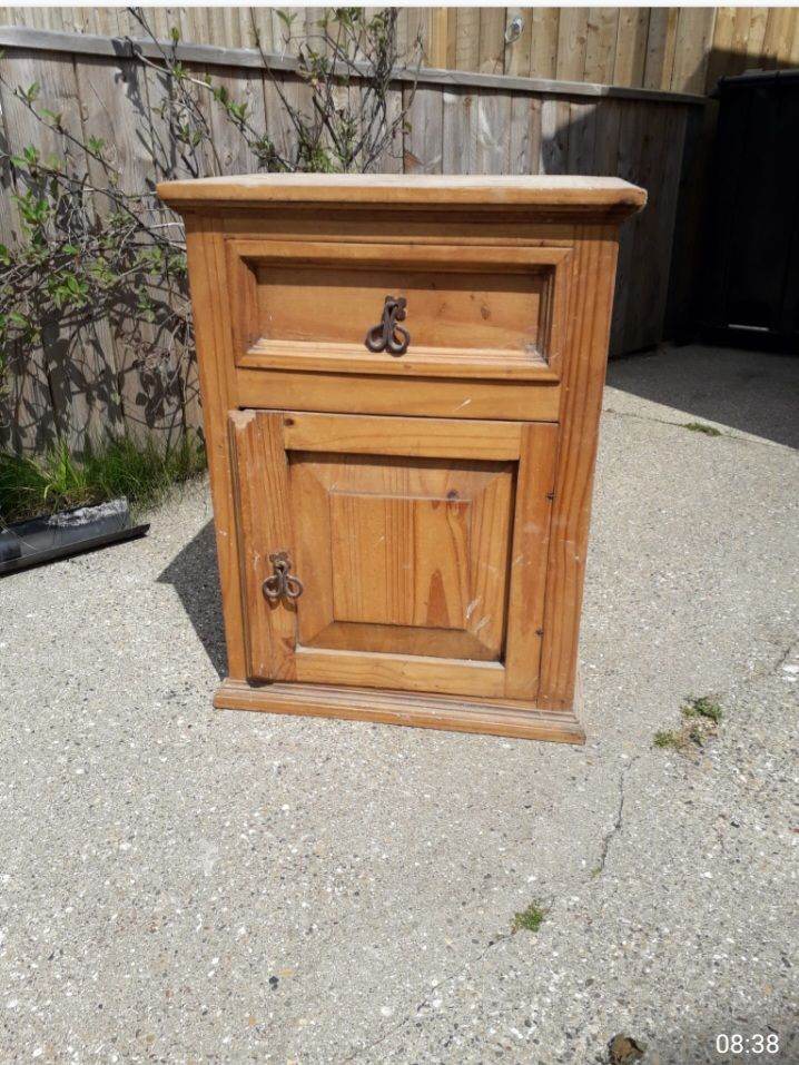 Small Mexican pine cabinet with drawer and cupboard. Potential for upcycling. Collection only.