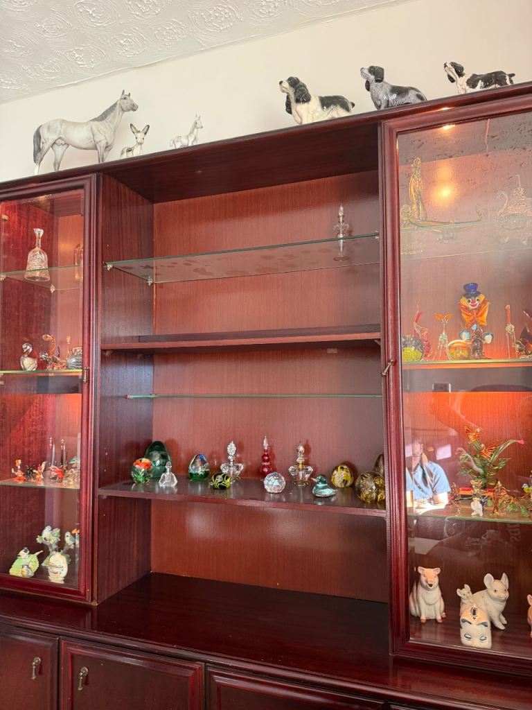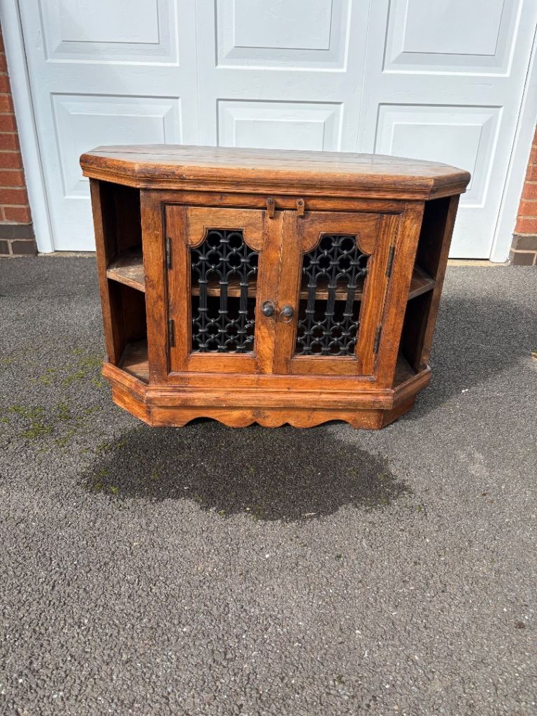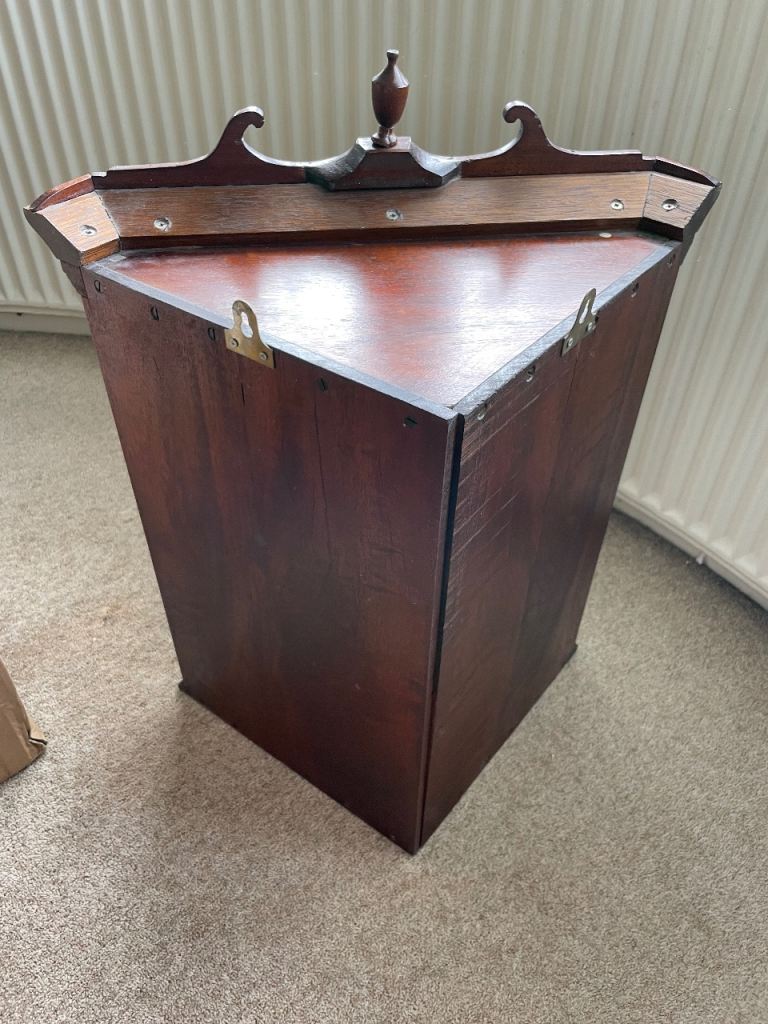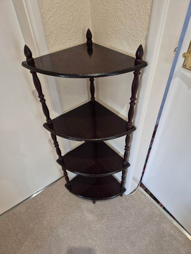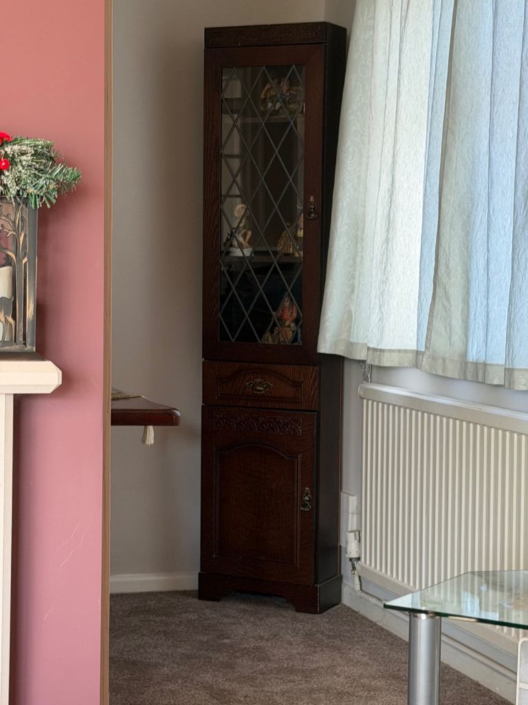Posting for 1+ monthsSmall vintage wooden corner unit with glass door and single shelf