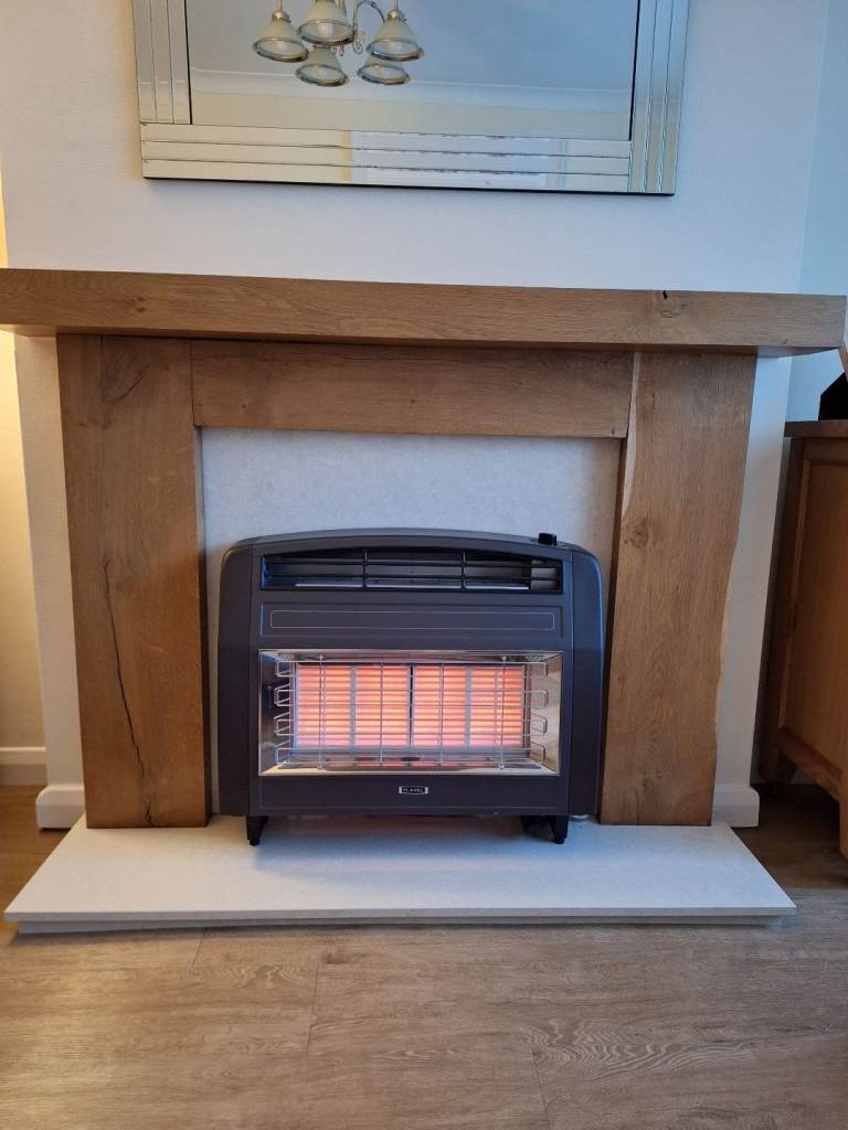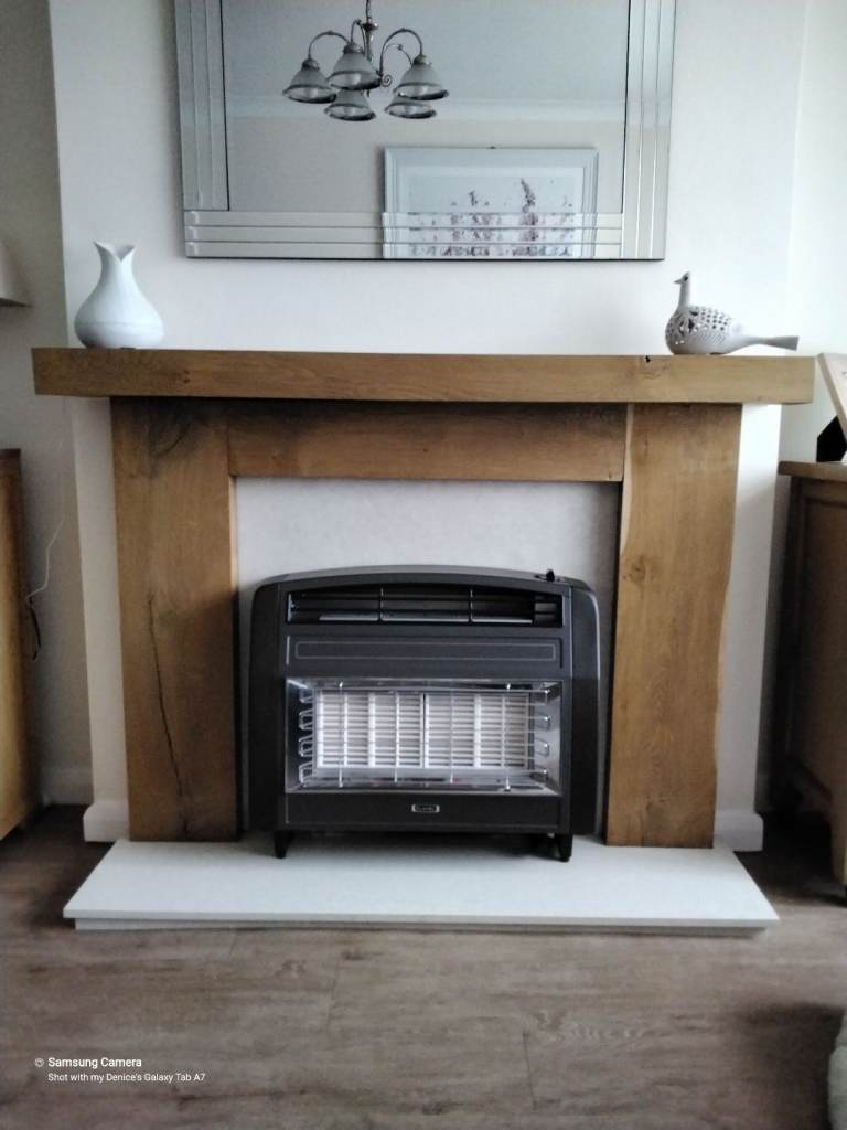 Solid oak fire surround with marble back and hearth. Fully working gas fire including.