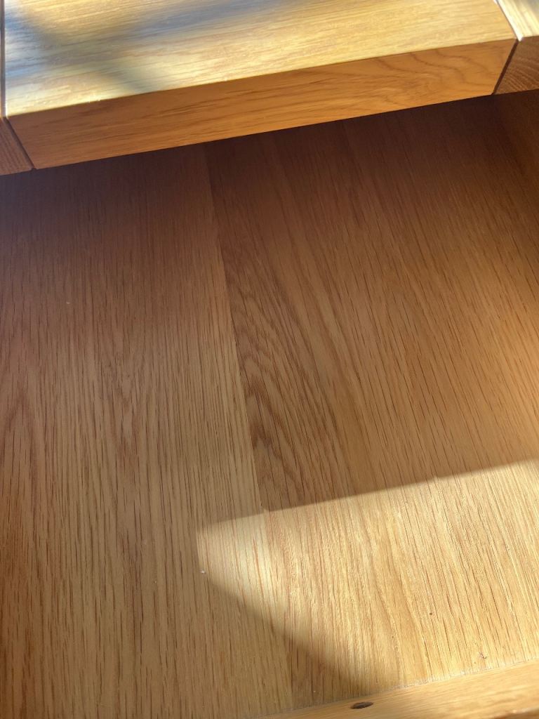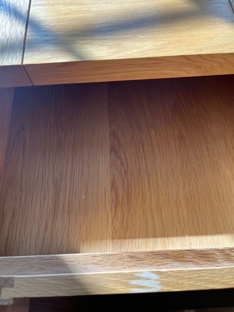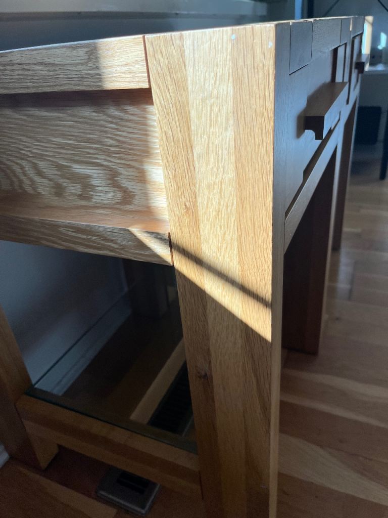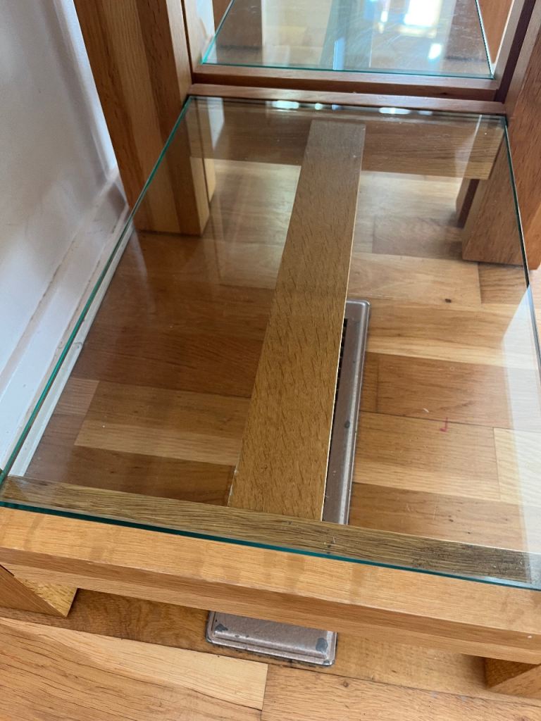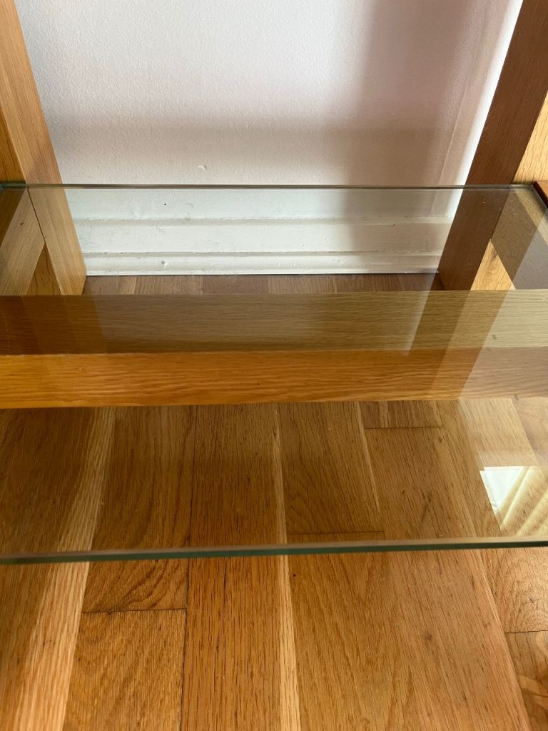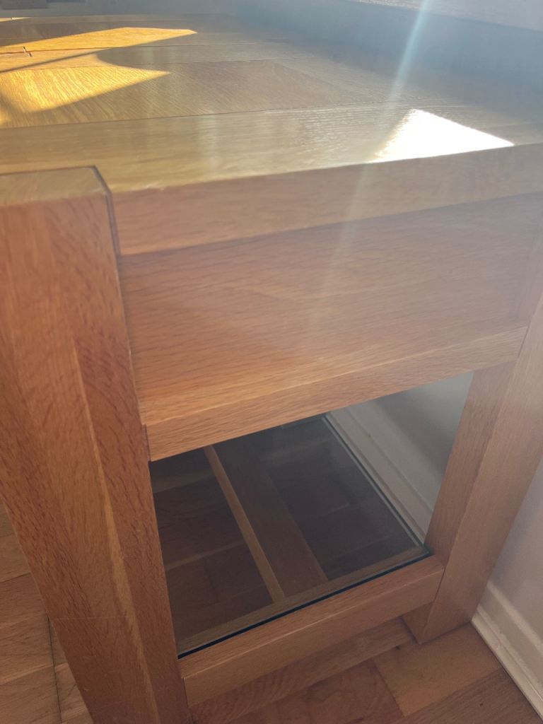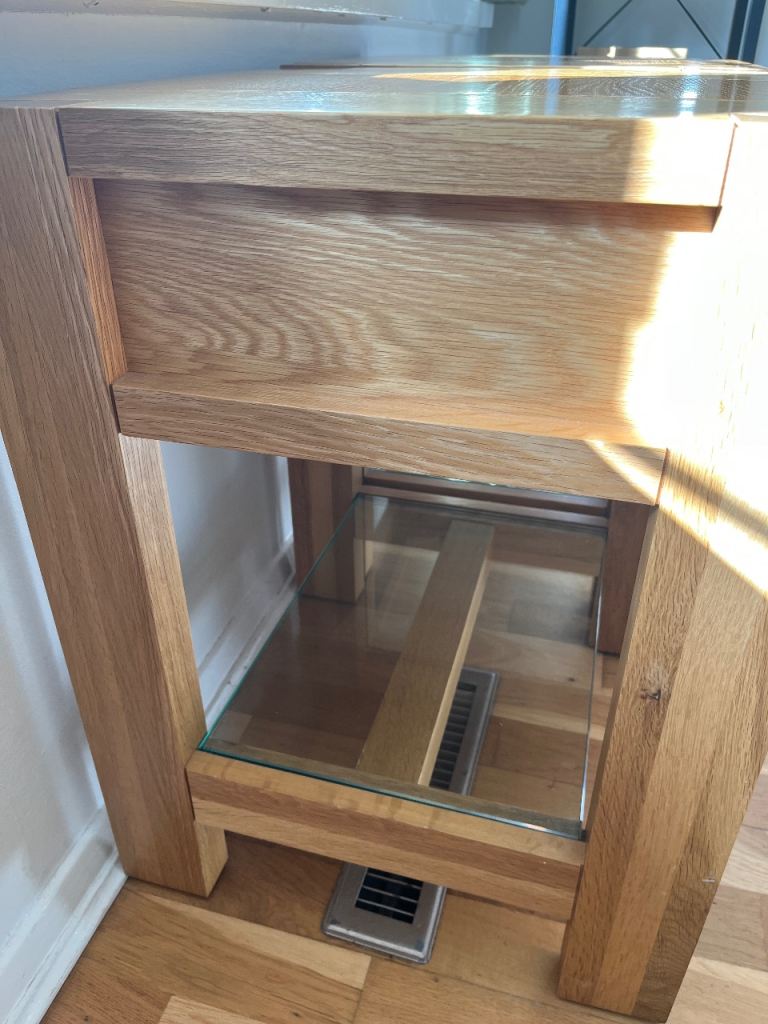 Posting for 10+ yearsSolid Oak Side Tables – Matching Pair - Drawer & Glass Shelf