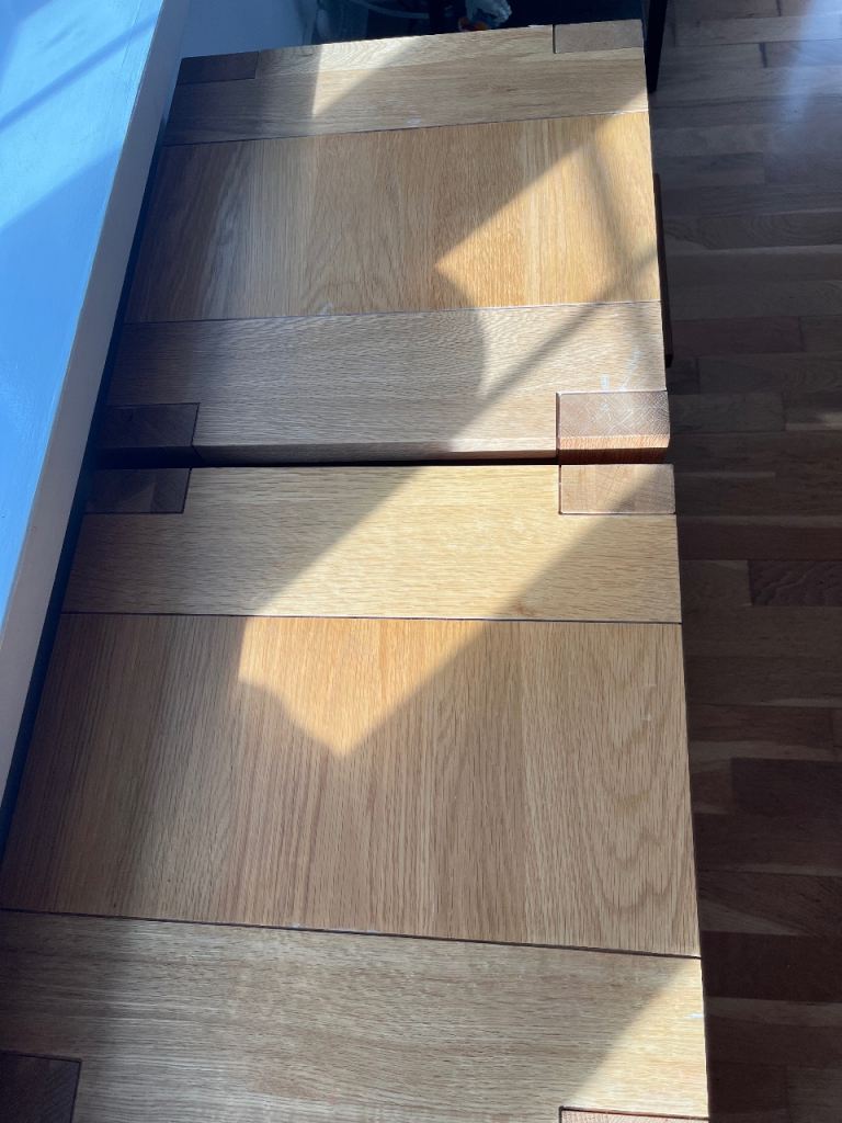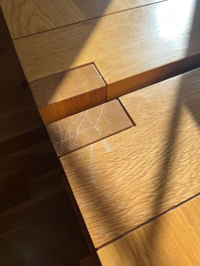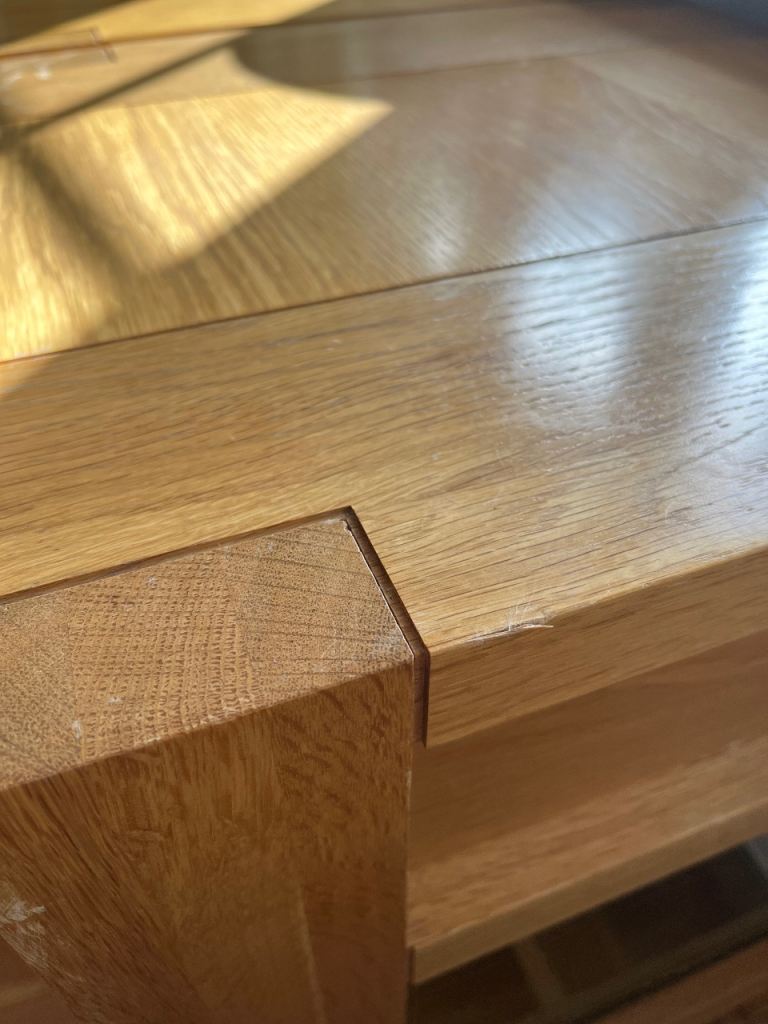 Overall very good with minor cosmetic wear consistent with normal use. (See photos). One table has a small surface scratch and a small chip on one leg (see photos). Nothing structural — both are solid and stable.