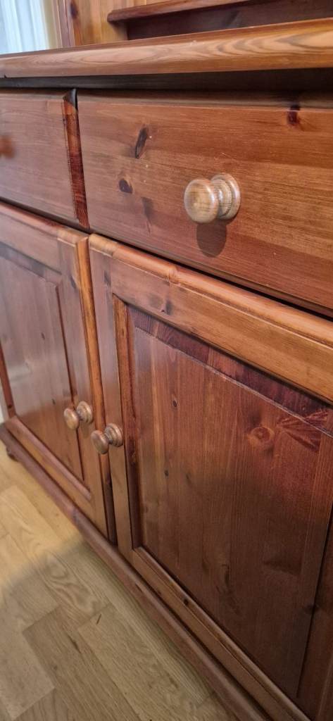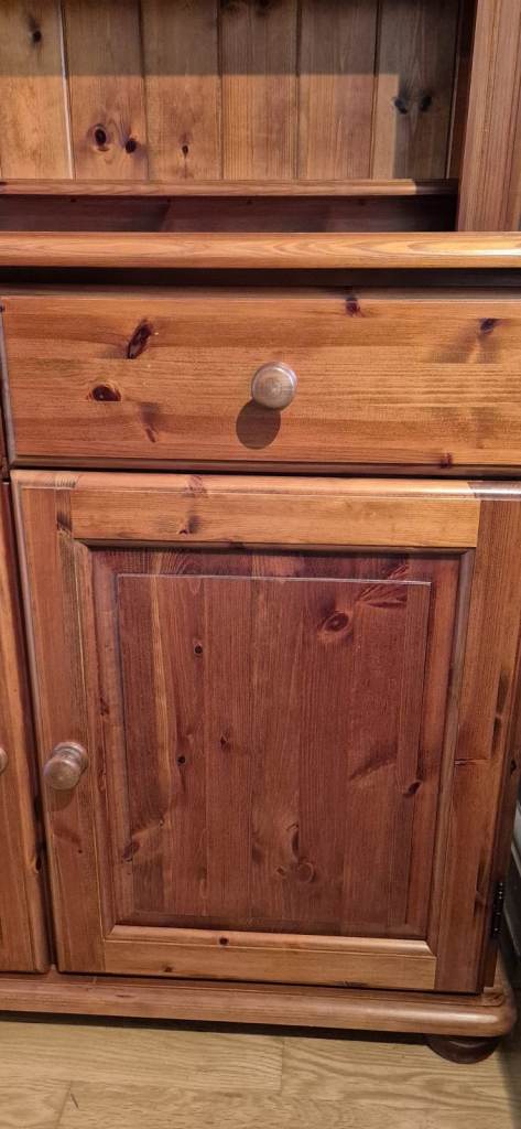 Posting for 13+ yearsSolid wood, dark antique pine dresser & separate cupboard (2 pieces of furniture). Excellent cond