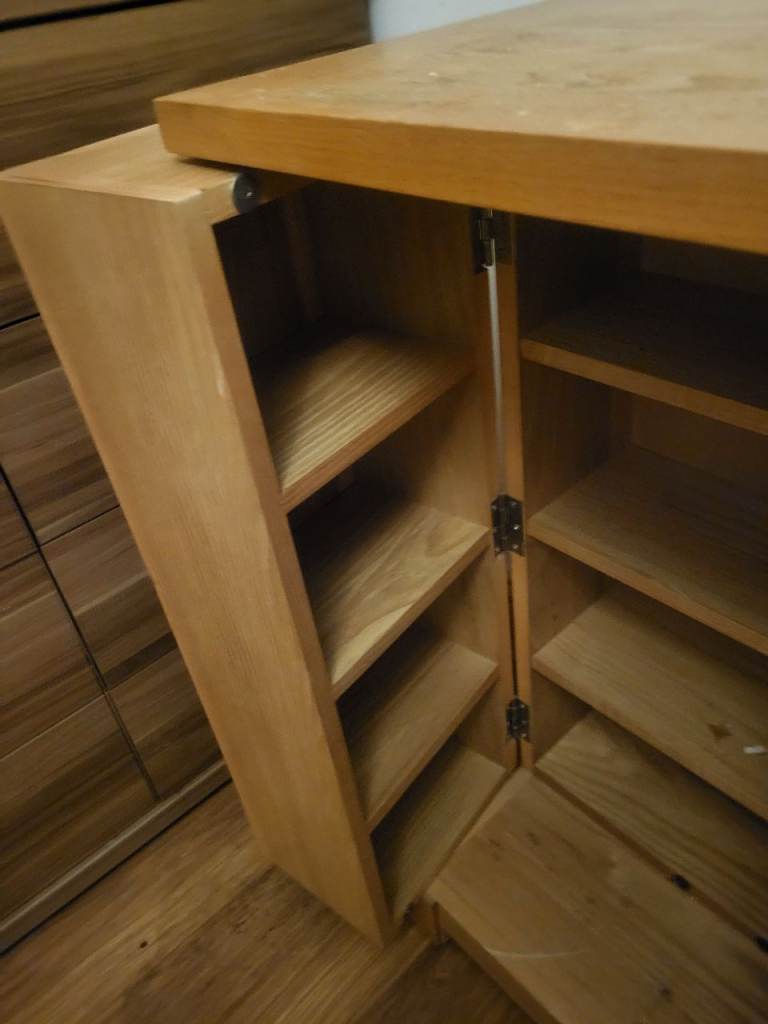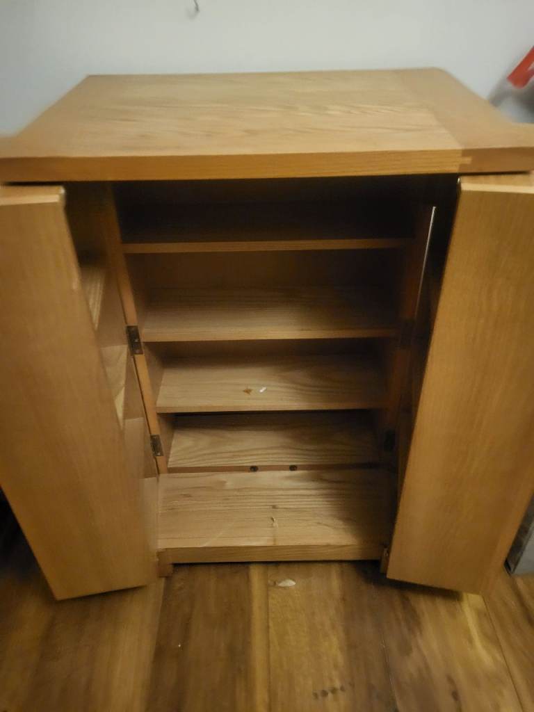 Solid wood unit slight scratch on hltop but could cover with lamp or vase other wise really good condition