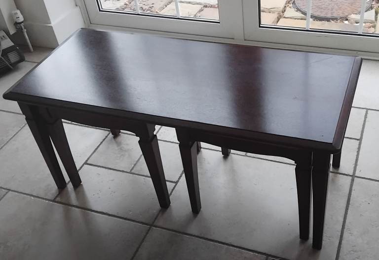 Stag Minstrel Long Nest of 3 Tables. Excellent condition, as new. Long table size 103 cms x 45 cms x 45 cms tall and 2 smaller tables both size 45 cms x 38 cms