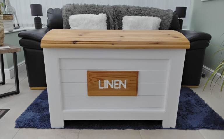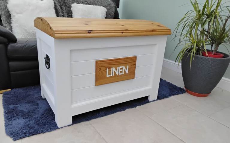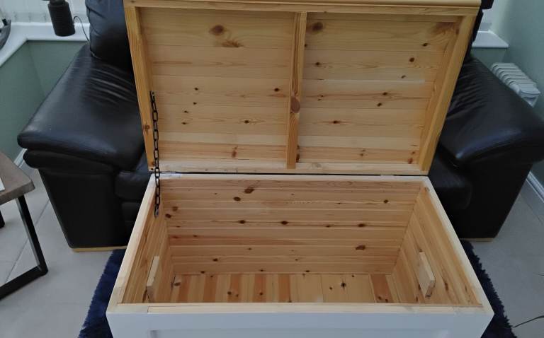 Stunning large storage chest . Newly refurbished sanded and painted white. Lovely domed rop has been varnished for protection . New metal handles to the sides. Very clean interior looks absolutely stunning. No work required.